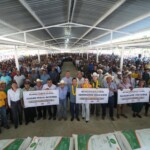 El secretario de Seguridad del Pueblo (SSP), Óscar Alberto Aparicio Avendaño, junto al fiscal general del Estado, Jorge Luis Llaven Abarca, atestiguaron la entrega de fertilizante a 15 mil productores para el cultivo de maíz P.V 2025, así como la entrega de reconocimientos y estímulos económicos a ejidos, como parte del fortalecimiento para la estrategia de prevención y combate a incendios que encabezó la presidenta municipal de Villaflores, Valeria Rosales Sarmiento.