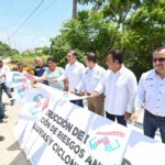 Posteriormente, en la cabecera municipal, dio el banderazo de inicio a la construcción de un muro de contención para mitigar riesgos durante la temporada de lluvias y ciclones tropicales 2025, y puso en marcha el Plan Integral de Atención e Intervención Médica.