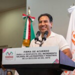 El gobernador Eduardo Ramírez Aguilar participó en la Firma de Acuerdo para la Respuesta del Incremento Salarial a Maestras y Maestros de la Sección 40 del Sindicato Nacional de Trabajadores de la Educación (SNTE). En este marco, subrayó que, además de un acto de justicia laboral, representa un reconocimiento a la vocación y al papel fundamental que desempeñan en favor de la educación y el desarrollo de Chiapas.