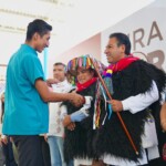 Ataviado con la vestimenta típica y sosteniendo el bastón de mando otorgado por las autoridades tradicionales, el mandatario convocó a la solidaridad y fraternidad, al asegurar que son el mejor camino para alcanzar la prosperidad compartida. Asimismo, llamó a los hombres a respetar a las mujeres para erradicar la violencia de género.