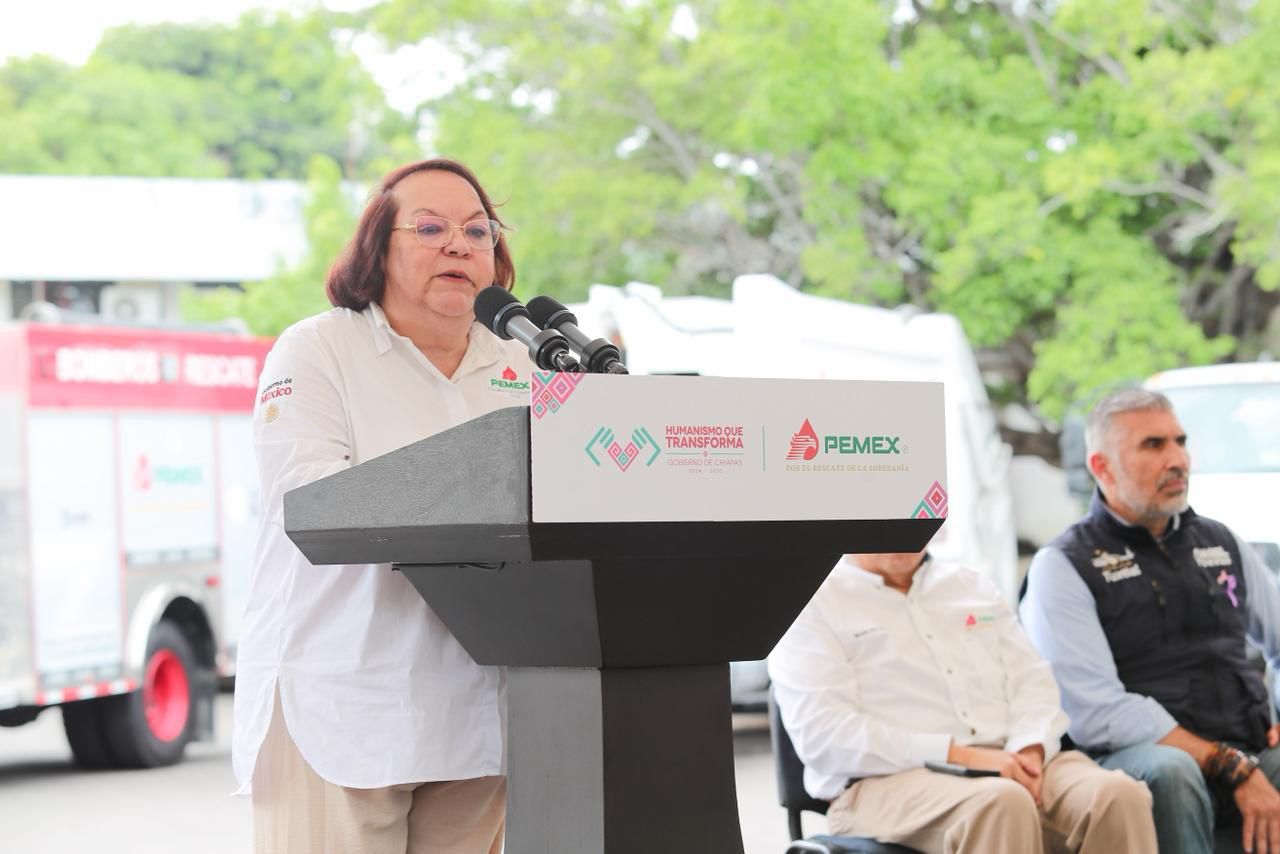 “Este esfuerzo manifiesta la convicción de que la responsabilidad social no es un acto aislado, sino parte esencial de la misión de una empresa pública que le pertenece al pueblo. Representa esperanza y un paso firme hacia un Chiapas más justo, más fuerte y con mejores condiciones para vivir”, precisó al detallar que en esta jornada se entregaron una pipa de agua, mobiliario escolar, patrullas, luminarias, un camión recolector de basura, equipamiento médico para centros de salud y hospitales comunitarios, así como equipo contra incendios.