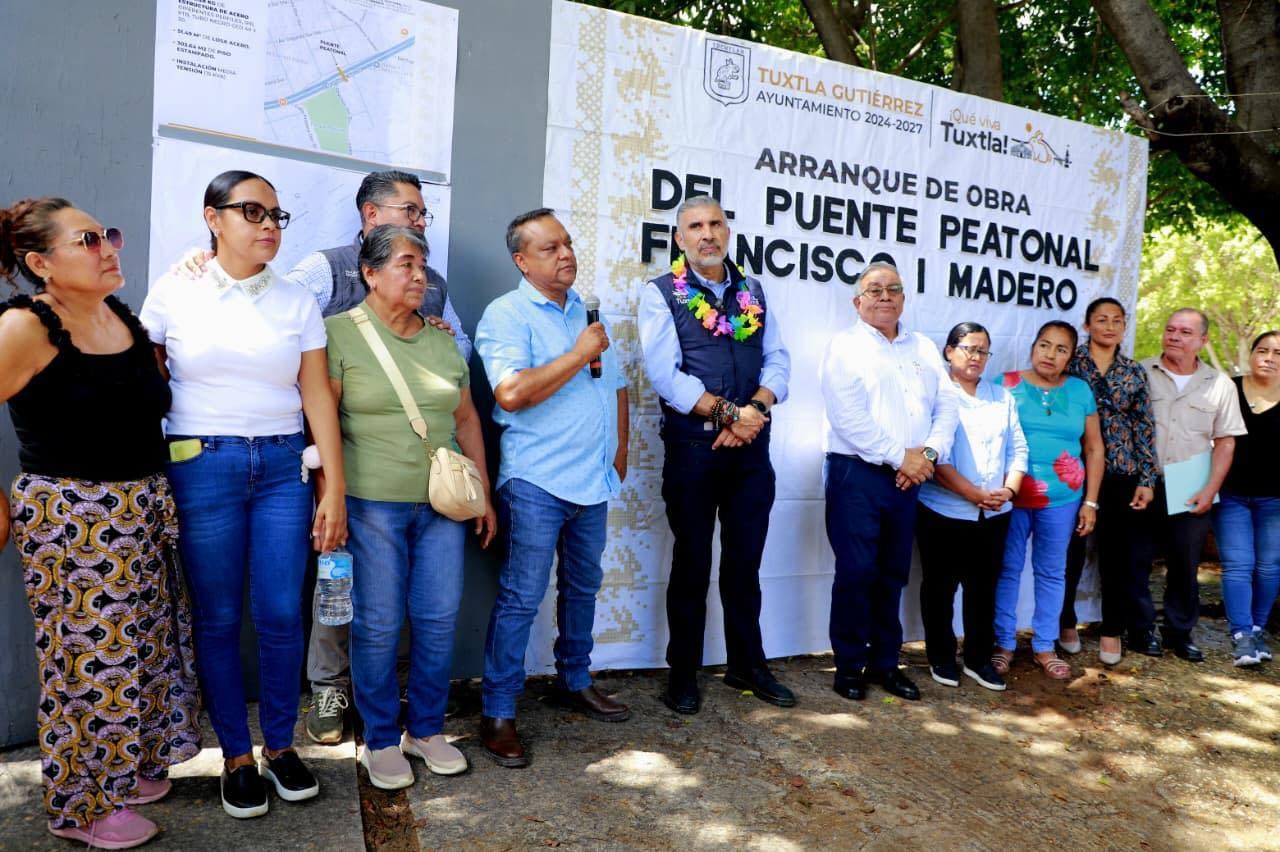 El presidente municipal de Tuxtla Gutiérrez, Angel Torres, dio el banderazo de inicio a la construcción del puente peatonal en el Libramiento Sur-Oriente, entre la 2ª y 3ª Oriente Sur, en la colonia Francisco I. Madero, una demanda de hace muchos años, debido a que ahí habían ocurrido accidentes lamentables.