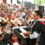 “Somos un gobierno que no impone y que siempre dialoga, porque gobernar no es mandar, sino obedecer. Así lo entendemos en este gobierno del humanismo: gobernamos obedeciendo, escuchando y dialogando. Nuestra aspiración es entregar un Chiapas con más avances, inspirado en la cosmovisión de nuestros pueblos originarios: el buen vivir, en armonía con la madre tierra, la comunidad y con nosotros mismos. Caminemos juntos hacia delante, al encuentro con nuestro porvenir”, expresó.