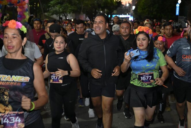 El gobernador Eduardo Ramírez Aguilar, acompañado de su esposa Sofía Espinoza Abarca y su hija Yazmín Ramírez Espinoza, participó en la Ruta Xibalbá 5K: carrera con alma, color y raíces, un encuentro deportivo y de convivencia ciudadana que reunió a más de 10 mil participantes en un ambiente lleno de arte, cultura y tradición, como parte del Festival Xibalbalam.