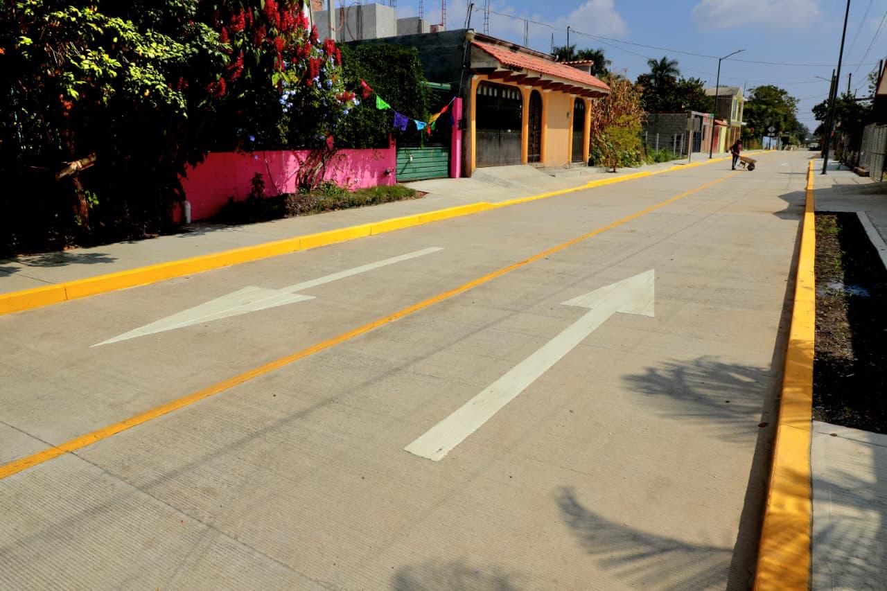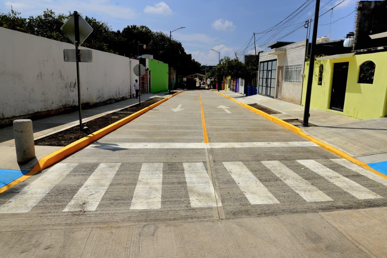 Hoy las y los habitantes de El Jobo cuentan con una calle integral, con banquetas, jardineras, alumbrado, rejilla pluvial, red de agua potable, drenaje y adicionalmente se pintaron las fachadas de las viviendas.