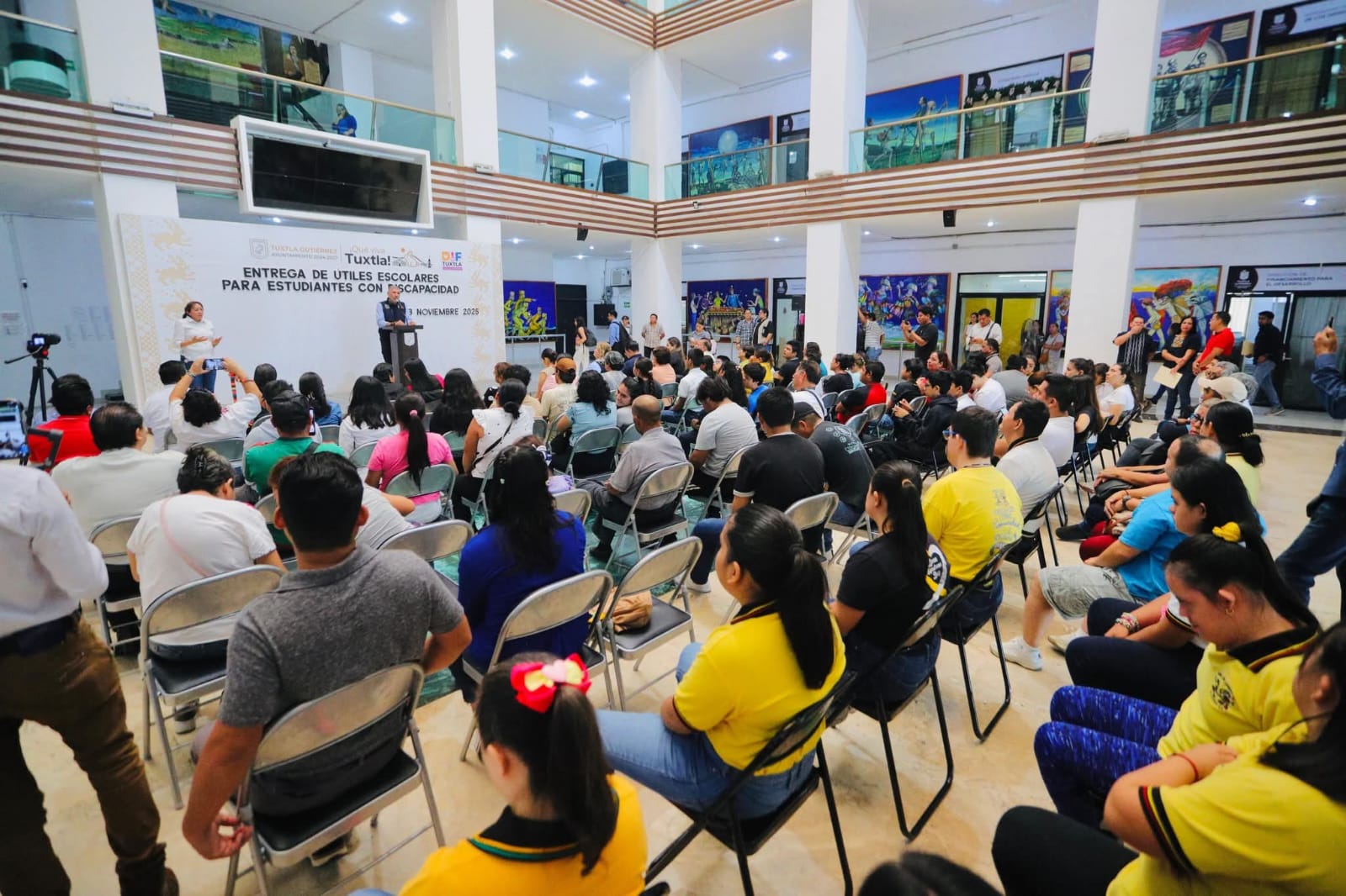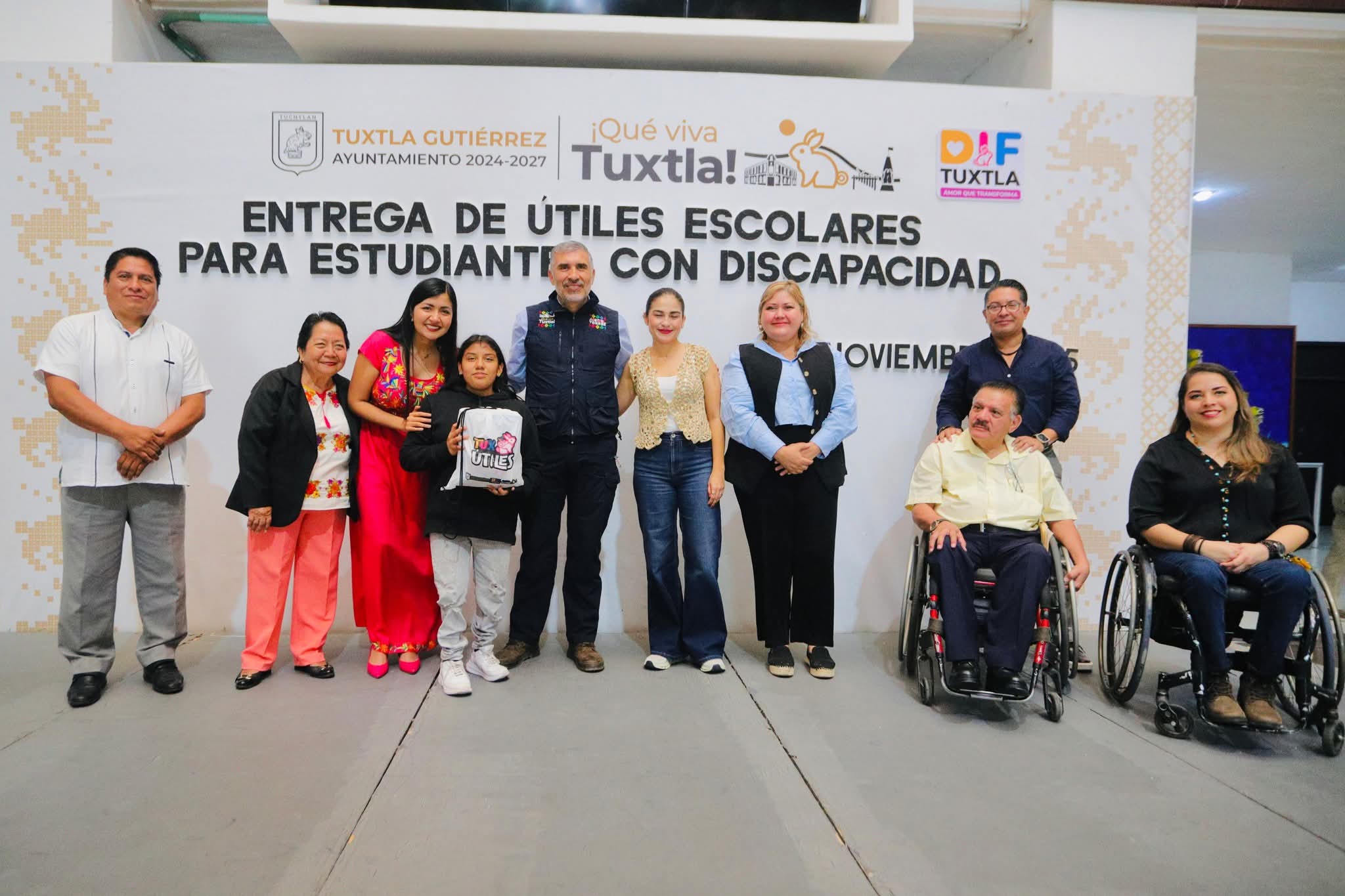 El presidente municipal de Tuxtla Gutiérrez, Angel Torres, encabezó la entrega de 104 paquetes de útiles escolares a estudiantes con discapacidad, como parte del programa “TUX ÚTILES”, reafirmando el compromiso por impulsar acciones que fortalezcan el bienestar y la inclusión en la capital chiapaneca.