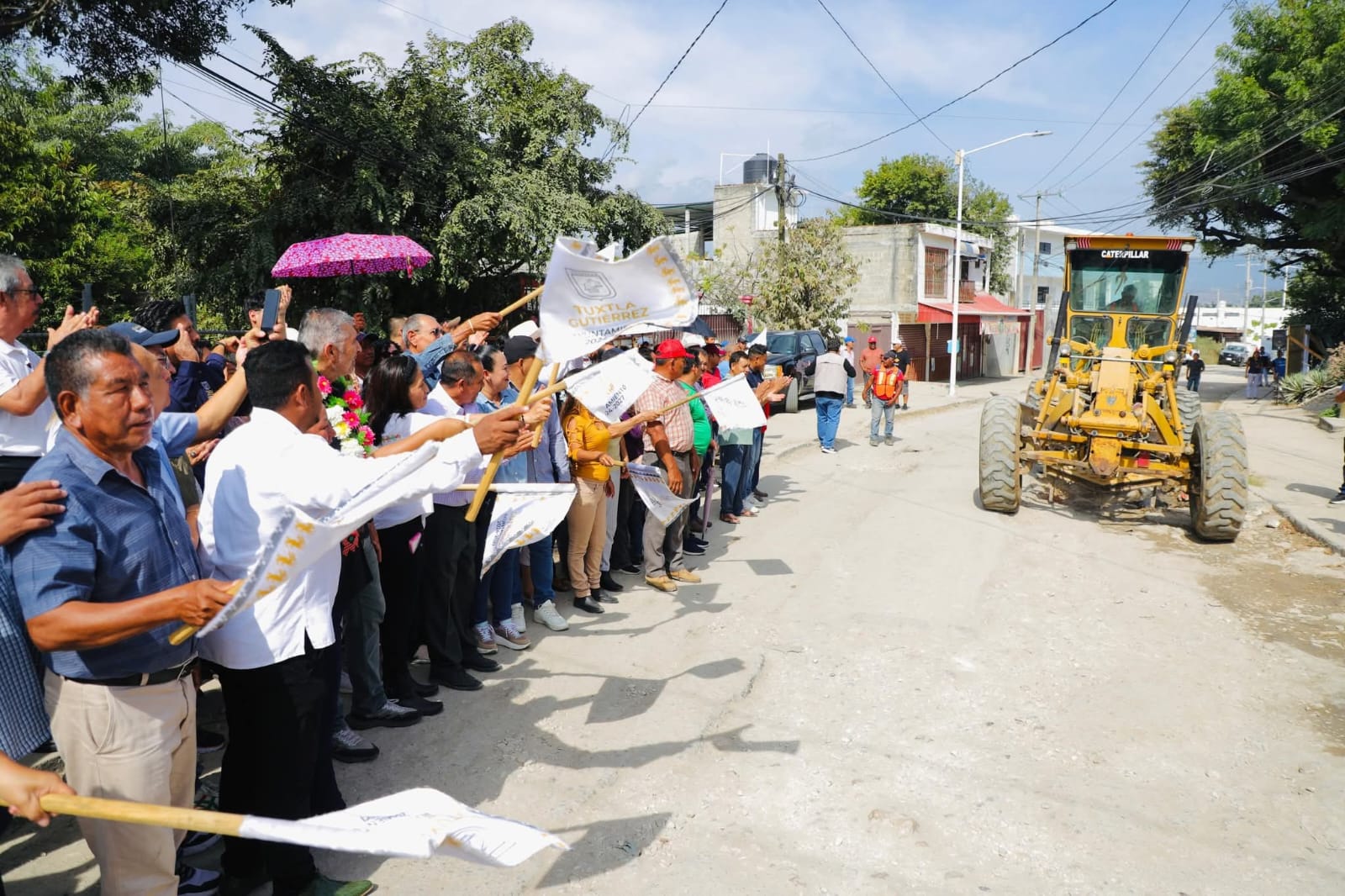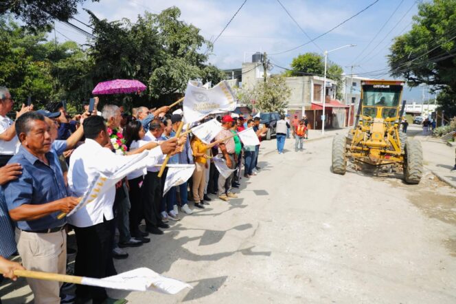 Con gran alegría cientos de colonos recibieron la noticia del reencarpetamiento de 905 metros lineales Camino Rural A Pacú, con banquetas, cunetas y alumbrado público, una vialidad que estaba en pésimas condiciones y que este lunes el presidente Angel Torres puso en marcha los trabajos junto a las y los habitantes de la zona.