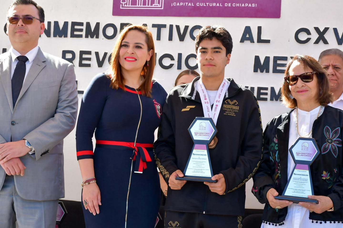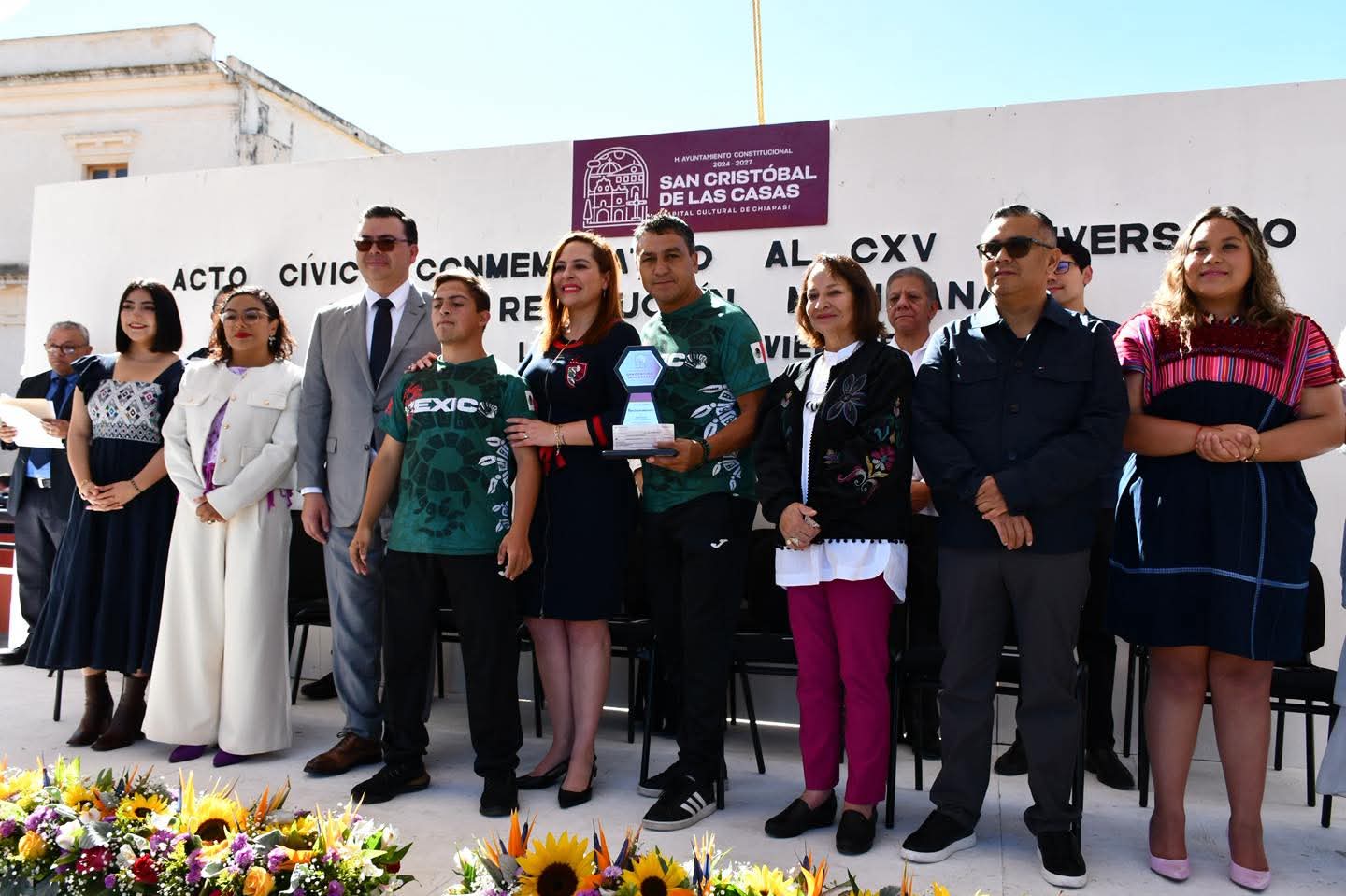 En el marco del 115 aniversario de la Revolución Mexicana, el H. Ayuntamiento de San Cristóbal de Las Casas, que preside la Mtra. Fabiola Ricci Diestel, entregó el Premio Municipal del Deporte 2025, un reconocimiento a atletas, entrenadores y promotores que han destacado por su esfuerzo, disciplina y contribución al desarrollo deportivo en la ciudad.