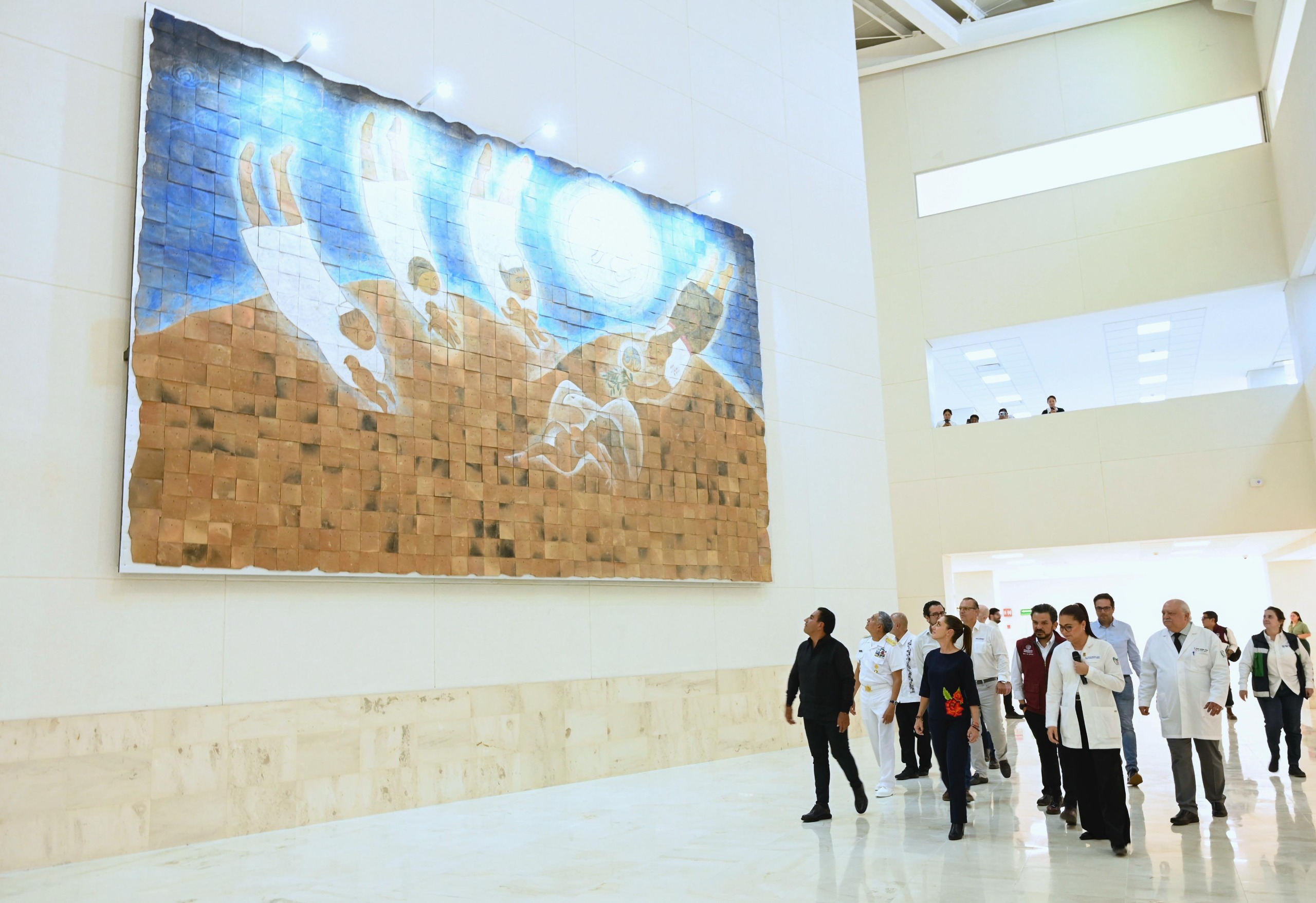 El director general del IMSS, Zoé Robledo Aburto, detalló que el hospital cuenta con 261 camas, seis quirófanos, 12 cubículos de parto, 43 especialidades y equipo de alta tecnología, incluido el resonador más potente del estado, además de una plantilla de mil 691 trabajadores. Añadió que, en apenas 68 días, ha otorgado más de 18 mil atenciones y más de 100 cirugías, y que en menos de 24 meses podría realizarse el primer trasplante de corazón en la historia de Chiapas.