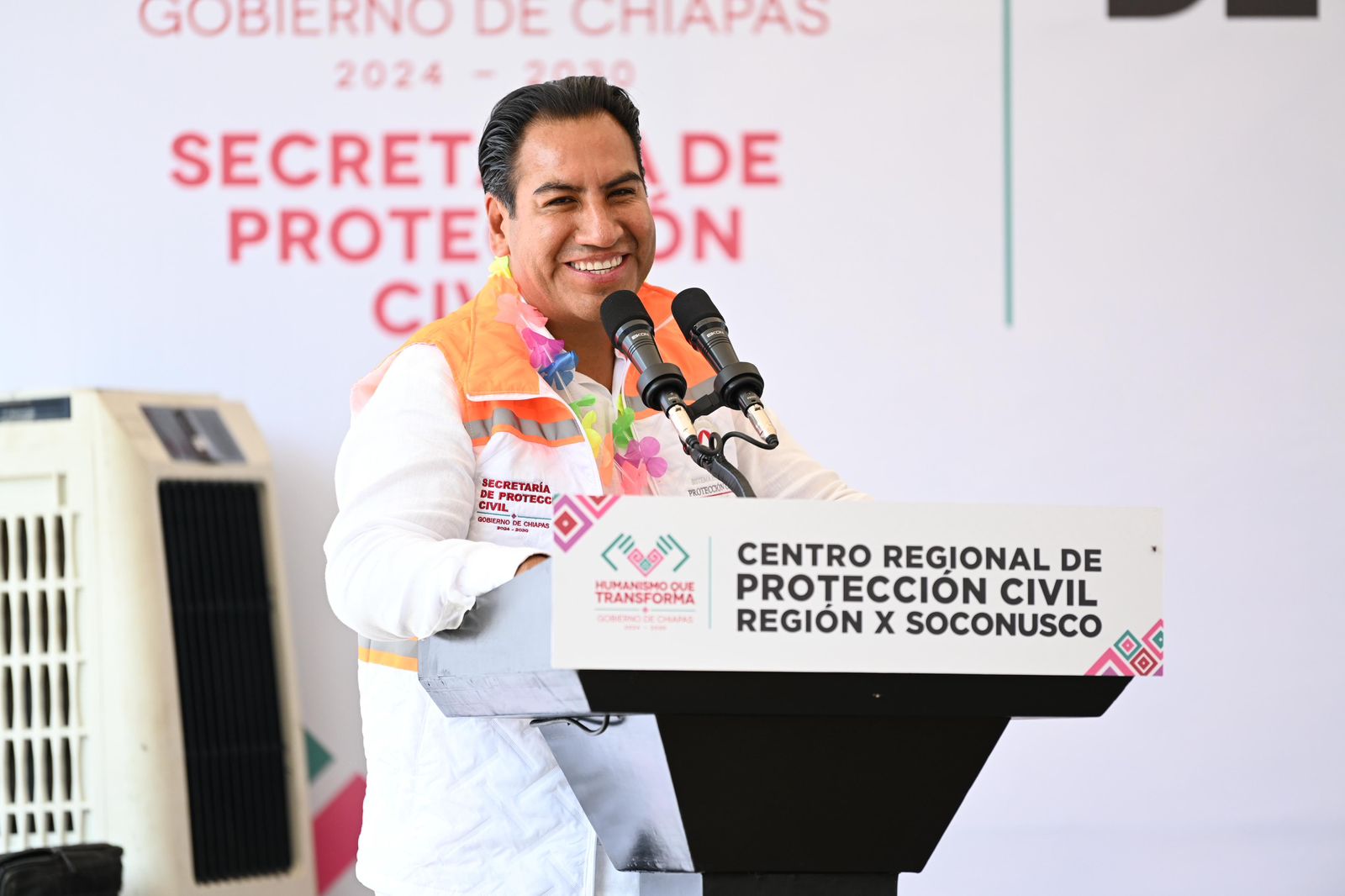 El gobernador Eduardo Ramírez Aguilar encabezó la colocación de la primera piedra del Centro Regional de Protección Civil en Tapachula, proyecto que contará con una inversión de 12 millones de pesos. Señaló que esta obra fortalecerá la coordinación y la capacidad de respuesta interinstitucional ante fenómenos naturales y situaciones de riesgo en los municipios de la región Soconusco.