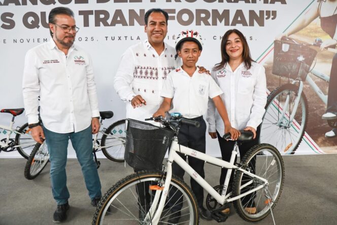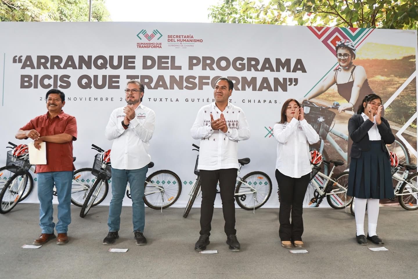 El gobernador Eduardo Ramírez Aguilar encabezó el arranque del programa Bicis que Transforman, una iniciativa que fomenta el uso de la bicicleta como medio de transporte eficiente, económico, saludable y respetuoso con el medio ambiente, en beneficio de estudiantes de Tuxtla Gutiérrez.