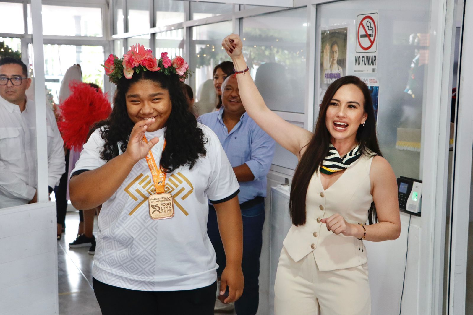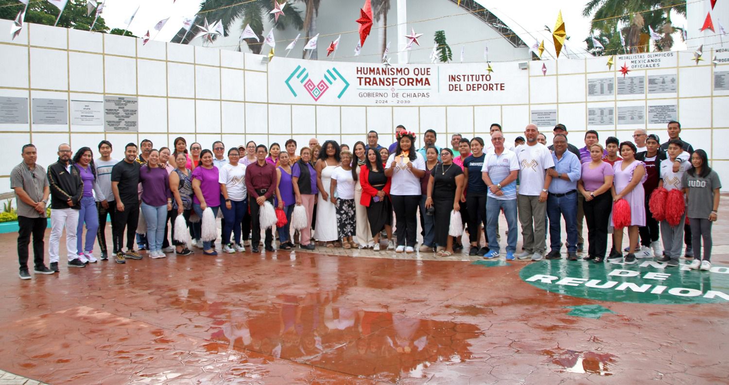 Con alegría y porras fue recibida este lunes por parte del personal, entrenadores y atletas del Instituto del Deporte del Estado de Chiapas (Indeporte), encabezado por Bárbara Altúzar Galindo.