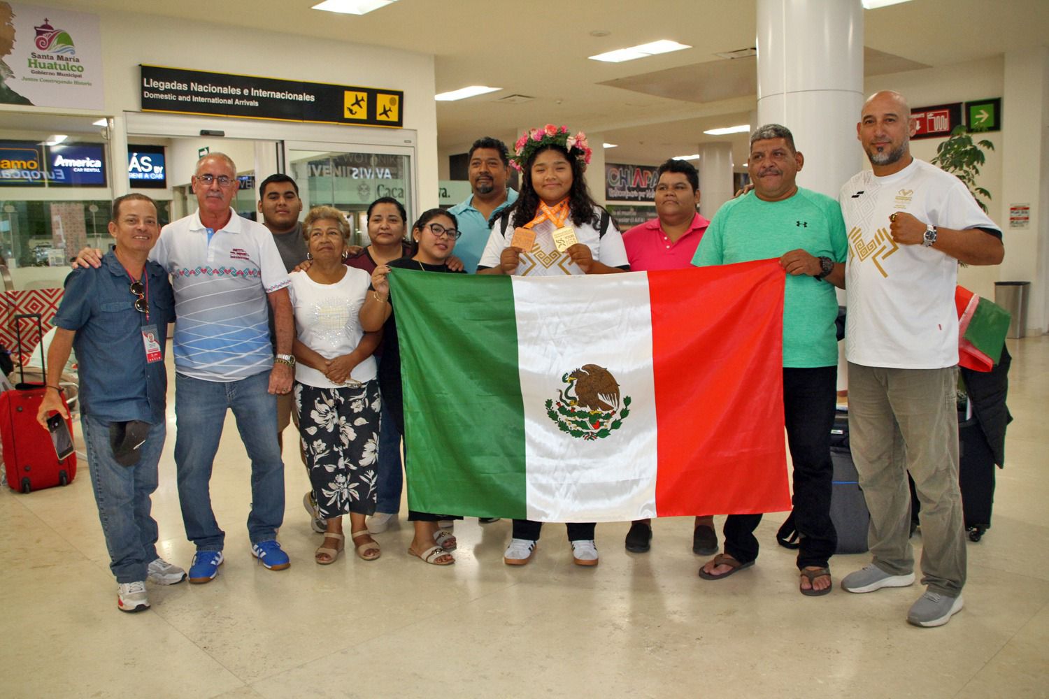 A su llegada al estado la esperaban en el Aeropuerto Internacional “Ángel Albino Corzo” sus familiares y personal técnico del Indeporte.