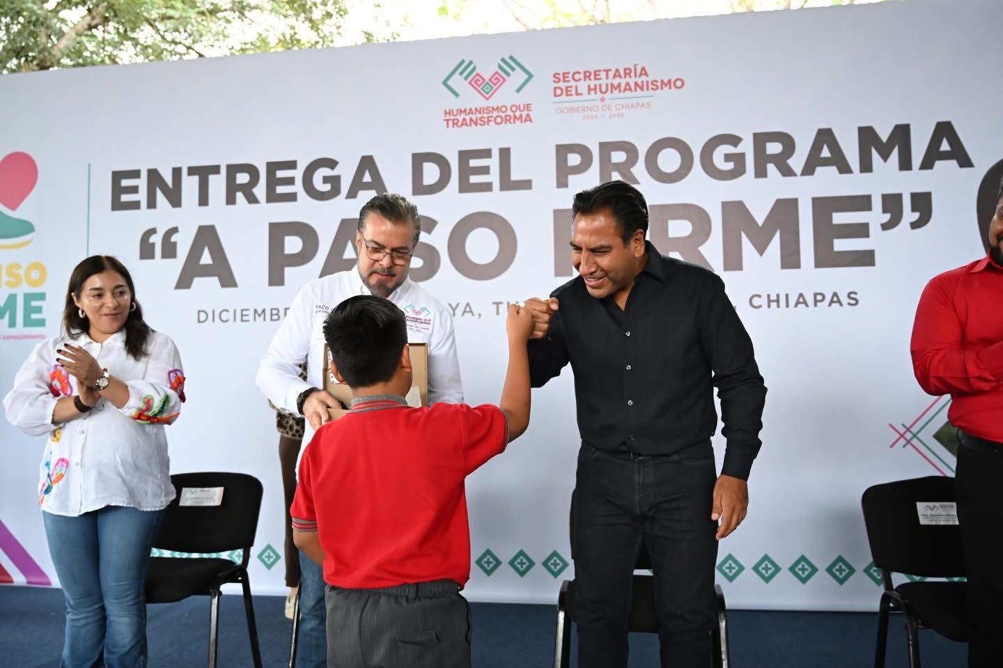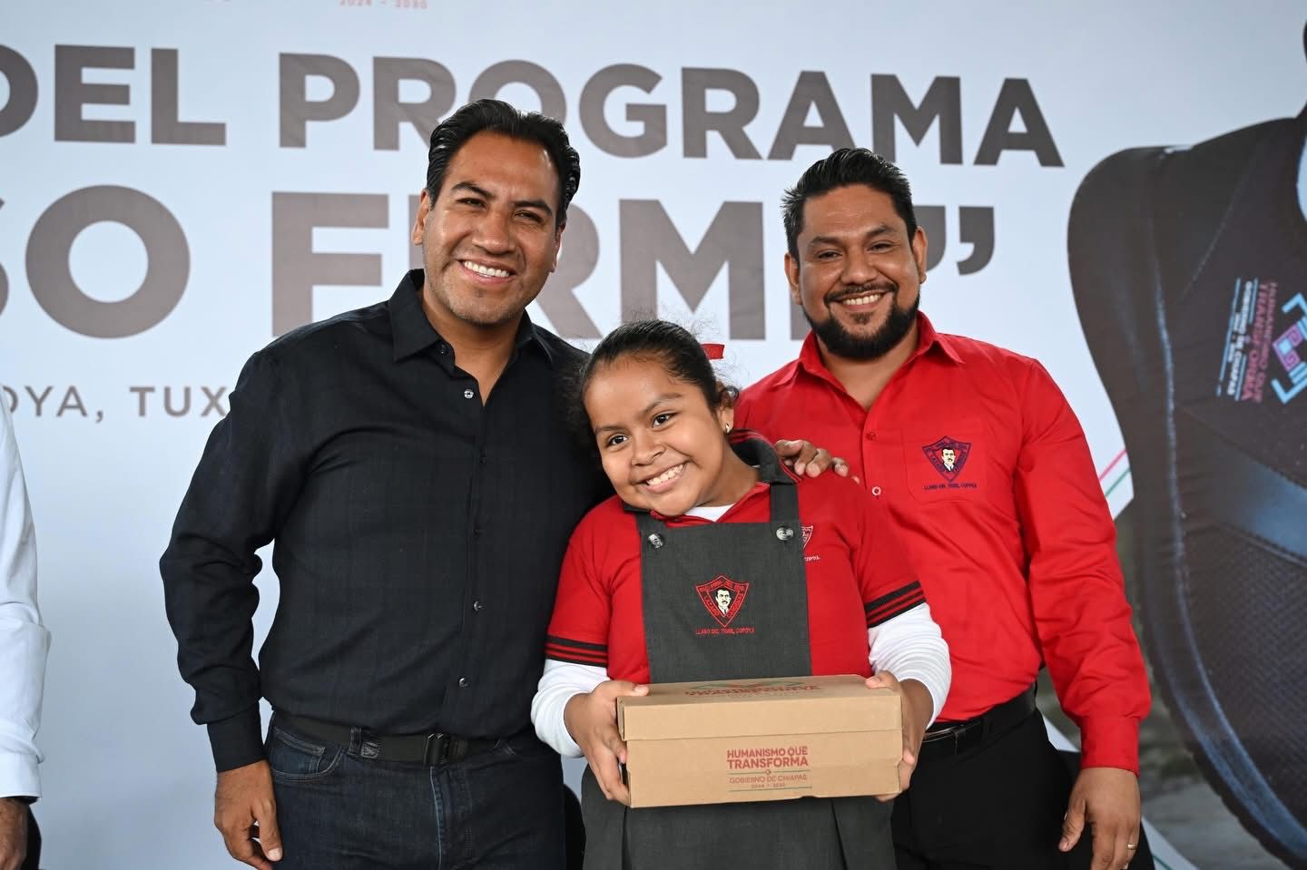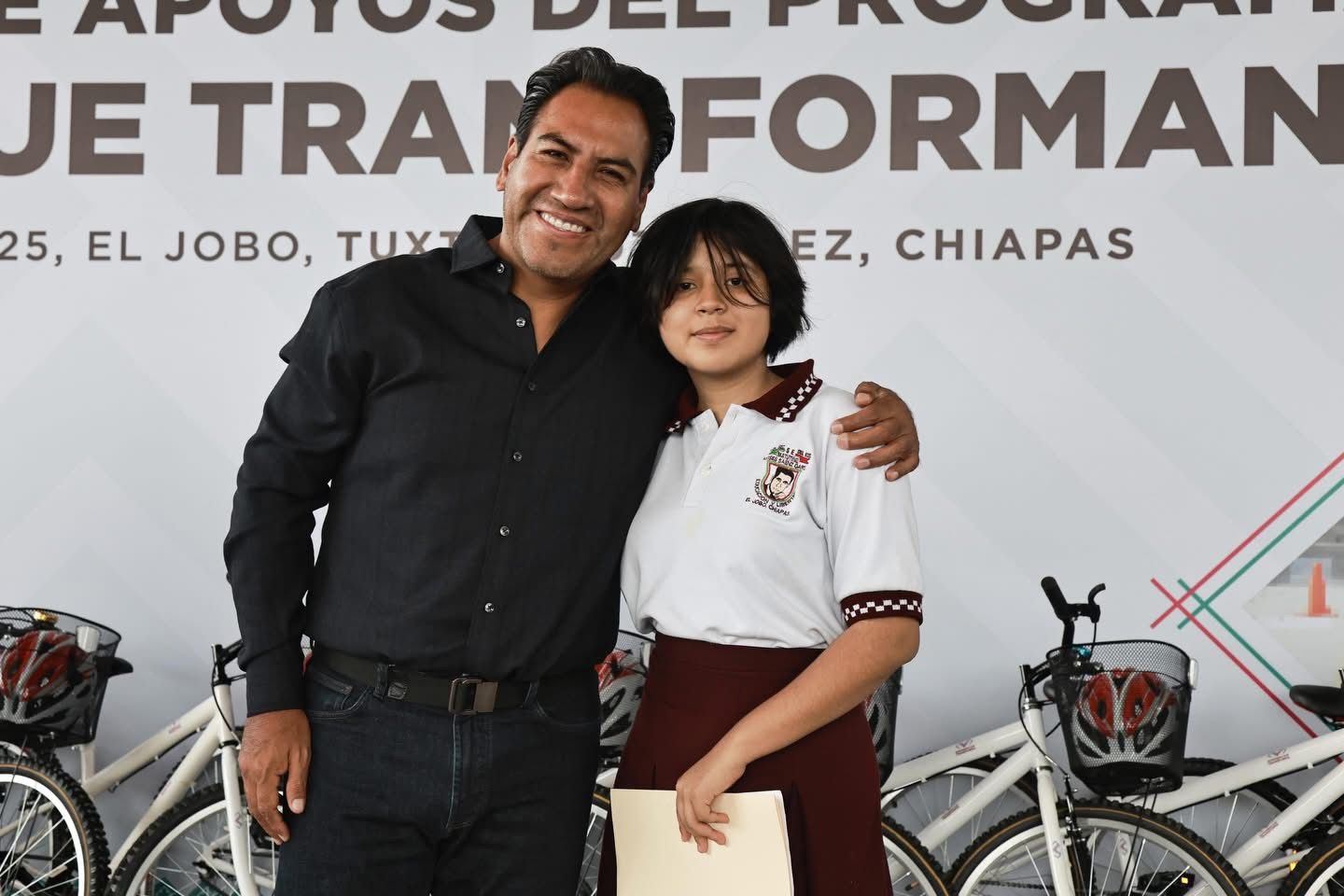 El gobernador Eduardo Ramírez Aguilar llevó alegría a niñas, niños y jóvenes de Tuxtla Gutiérrez con la entrega de apoyos de los programas A Paso Firme y Bicis que Transforman, acciones humanistas que buscan garantizar igualdad de condiciones para su desarrollo escolar, deportivo y recreativo.