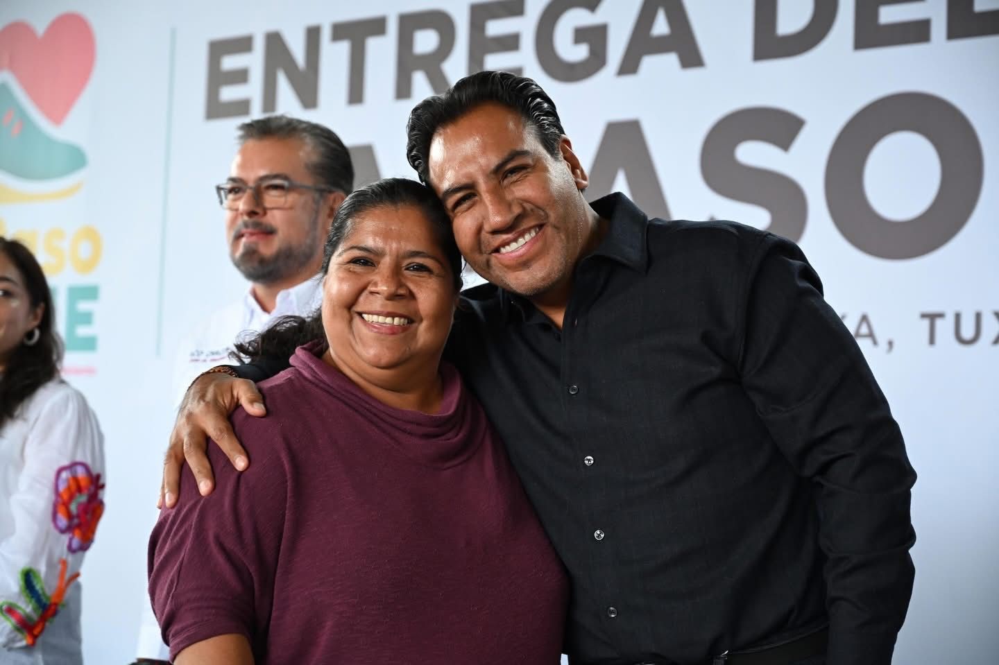 En la colonia Copoya, entregó 617 pares de tenis deportivos del programa A Paso Firme a alumnas y alumnos de la Escuela Primaria Lázaro Cárdenas del Río. Las risas, aplausos y felicidad de las y los niños contagiaron de emoción al mandatario, quien les explicó que esta iniciativa tiene como propósito apoyar la economía familiar y asegurar  que cuenten con lo necesario para crecer con plenitud.