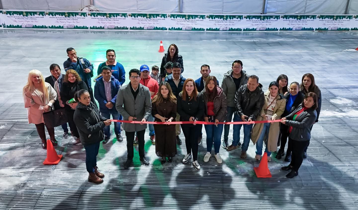 En un ambiente lleno de emoción y espíritu navideño, la presidenta municipal, Mtra. Fabiola Ricci Diestel, inauguró la pista de hielo instalada en el Museo de San Cristóbal (MUSAC), acompañada de regidoras, regidores, funcionariado municipal y ciudadanía. Durante su mensaje, la alcaldesa reconoció el esfuerzo del Cabildo y de todas las áreas del Ayuntamiento que, en días pasados, instalaron villas navideñas para hacer posible un espacio recreativo para la ciudadanía, el cual se complementa con la inauguración de la pista de hielo, destinada especialmente a las niñas, niños y adolescentes del municipio.