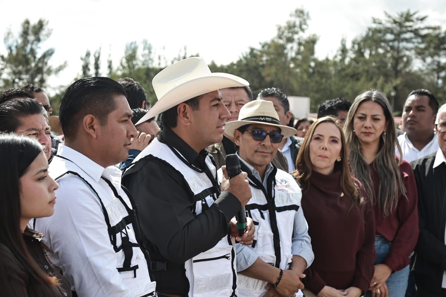 Durante esta gira por la región Meseta Comiteca Tojolabal acompañaron al gobernador la legisladora federal Rosario del Carmen Moreno Villatoro; los subsecretarios de Agricultura de la Secretaría de Agricultura, Ganadería y Pesca, Darinel Alvarado Villatoro; y de Gobierno en la Región Sierra Mariscal, Andrés Carballo Bustamante; legisladores locales; así como autoridades educativas, docentes, estudiantes y habitantes de la región, entre otros.