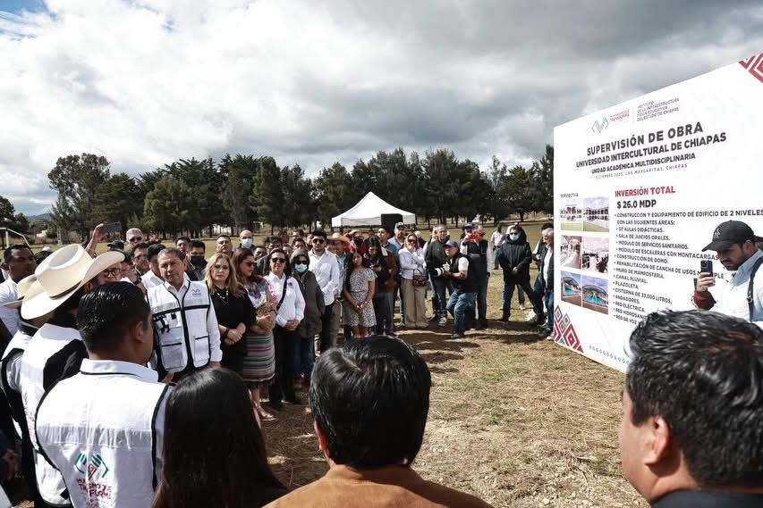 Asimismo, informó que en la Unidad Académica Multidisciplinaria de la Unich se invierten más de 26 millones de pesos para la construcción y equipamiento de un edificio de dos niveles, que contará con siete aulas didácticas, sala de juicios orales, módulos de servicios sanitarios, escaleras con montacargas y bodega, además de la rehabilitación de la cancha y obra exterior. Precisó que en Las Margaritas se han canalizado 32.4 millones de pesos para este rubro.