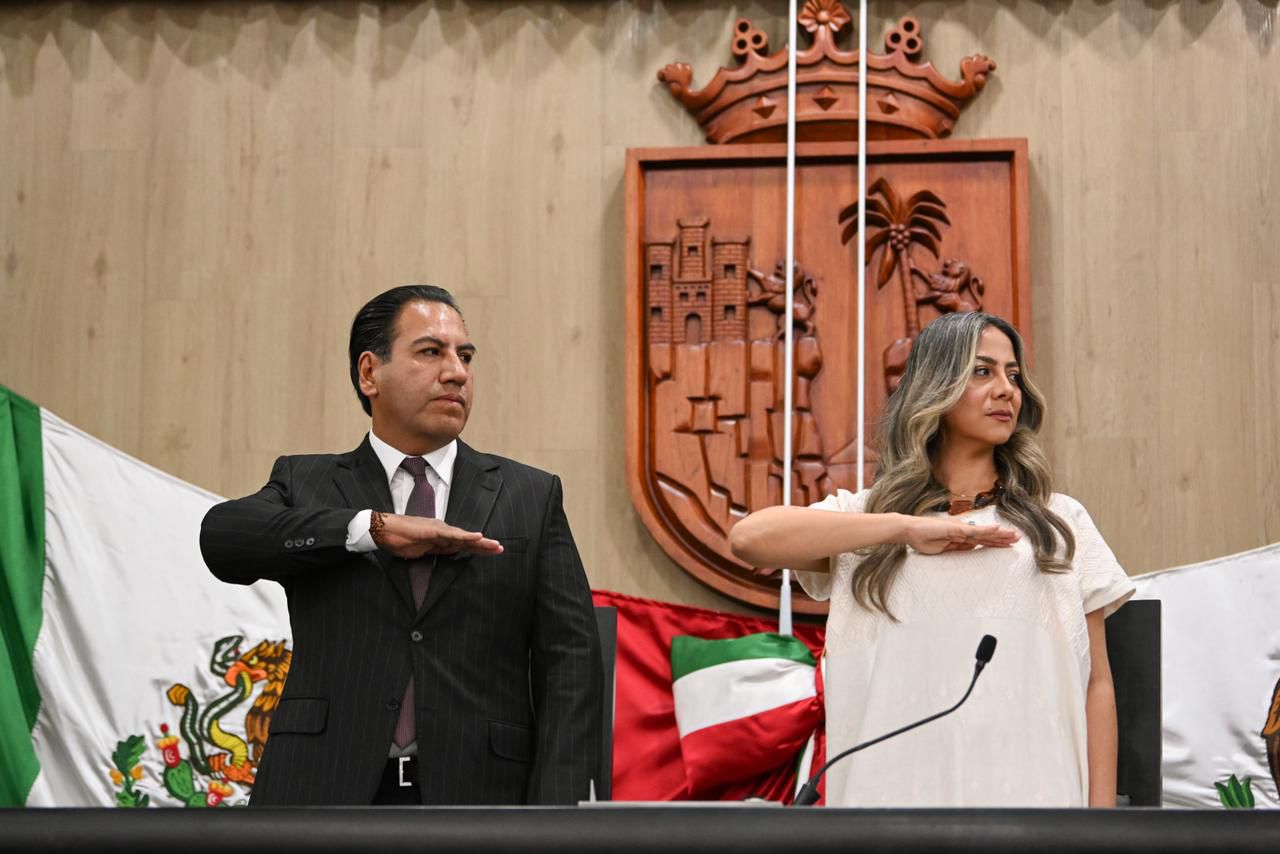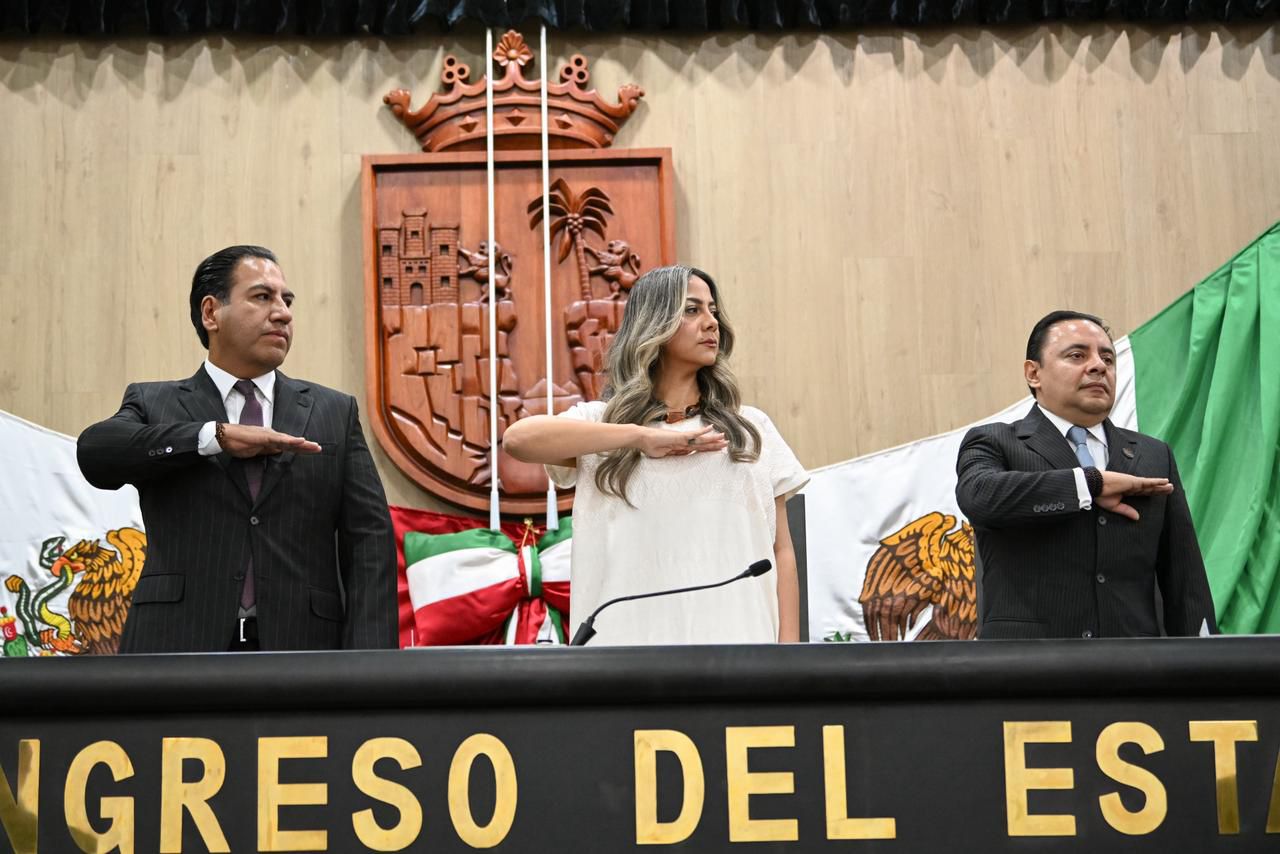 La presidenta de la Mesa Directiva del Poder Legislativo, Alejandra Gómez Mendoza, hizo uso de la palabra en la máxima tribuna donde emitió un mensaje relativo al hecho histórico que se vivió en la sede del constituyente.