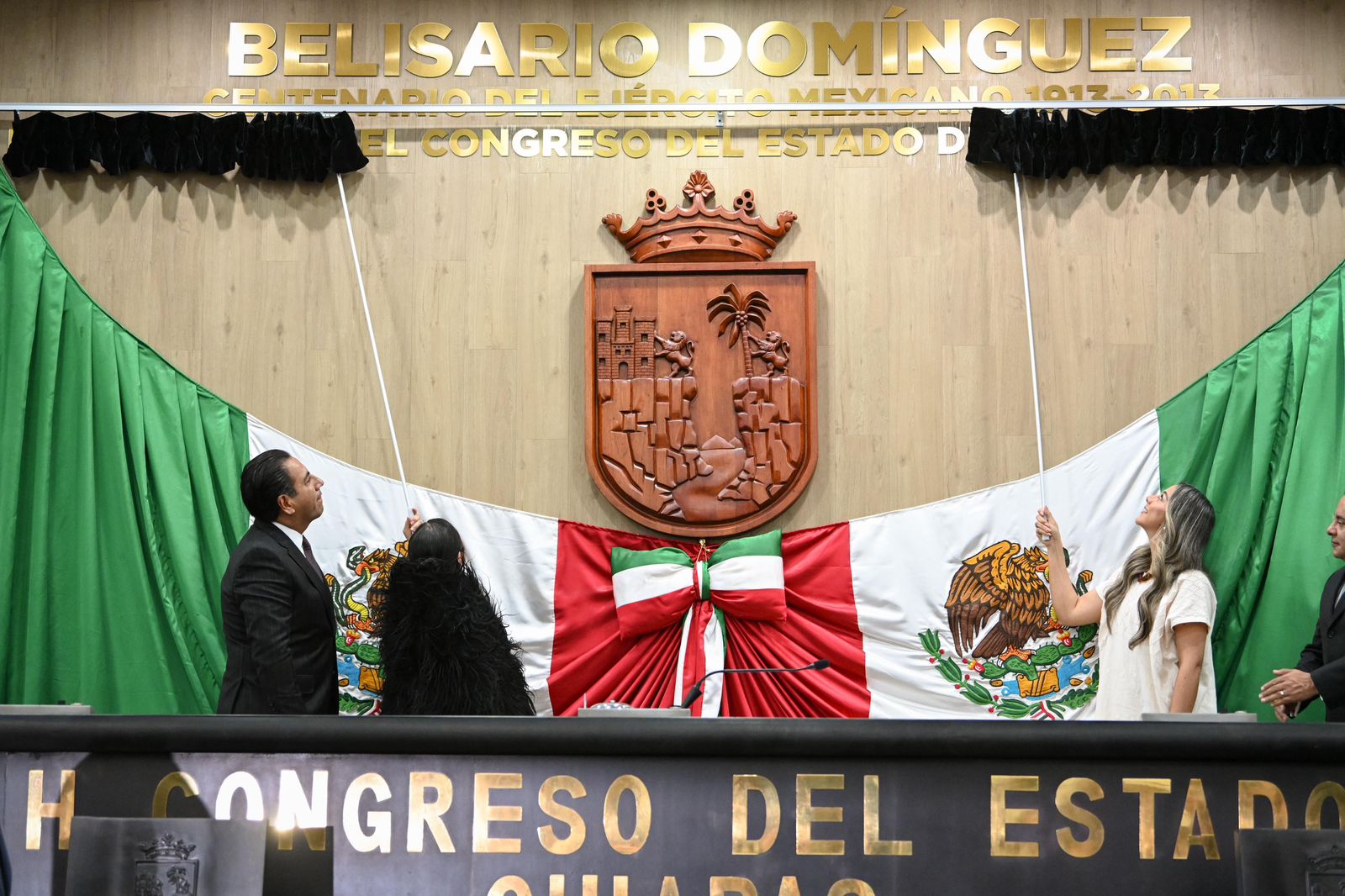 El gobernador constitucional del Estado de Chiapas, Eduardo Ramírez Aguilar –en acto protocolario– develó la leyenda: “Bicentenario del Congreso del Estado de Chiapas 1825-2025”, inscrita con letras doradas en el muro de honor de la Sala de Sesiones “Sergio Valls Hernández” de la sede del Poder Legislativo.