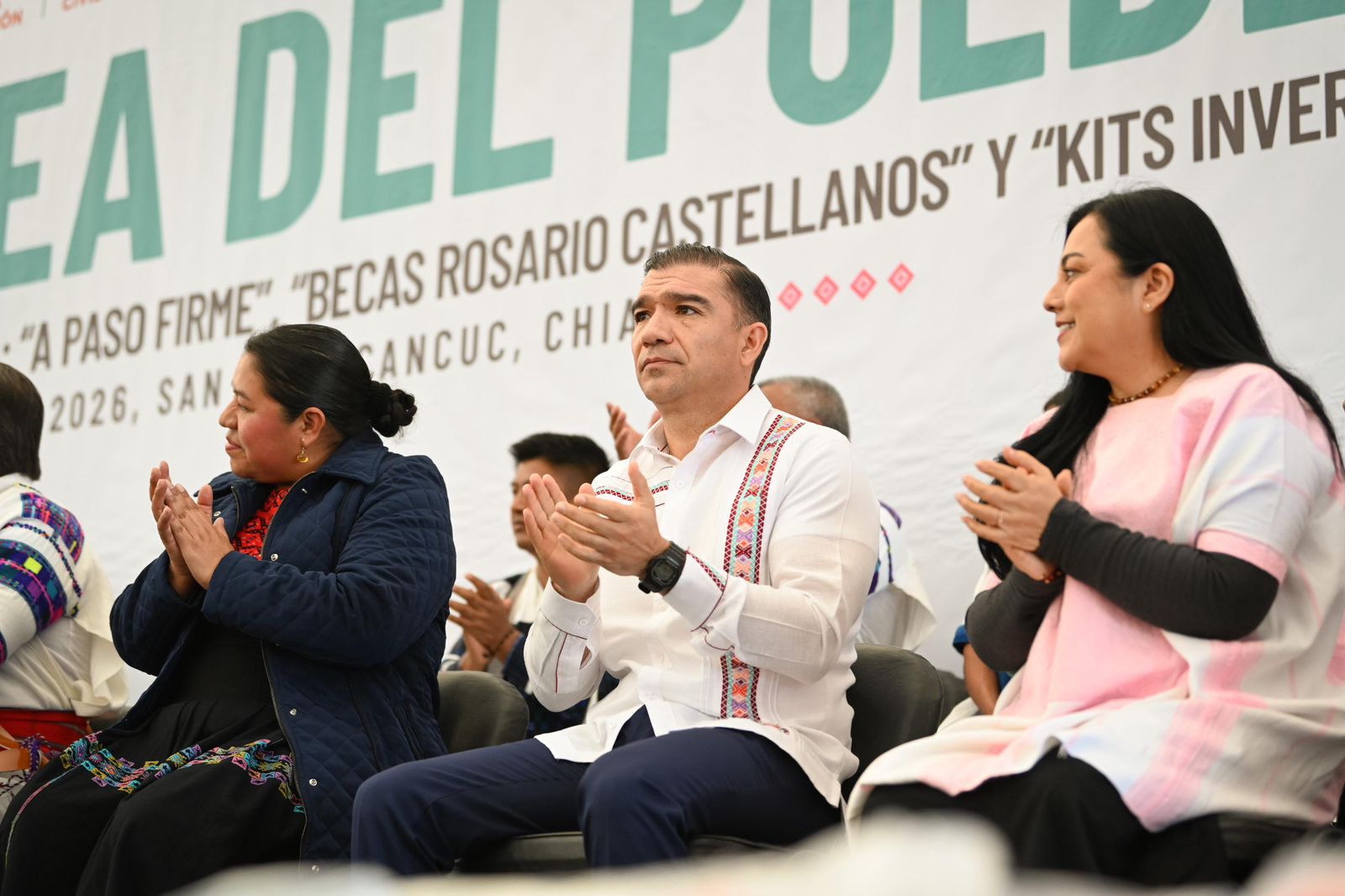 Estuvieron presentes la secretaria para el Desarrollo Sustentable de los Pueblos Indígenas, Leticia Méndez Intzín; el director general del Instituto Chiapaneco de Educación para Jóvenes y Adultos, Sergio David Molina Gómez; el diputado federal Emilio Ramón Ramírez Guzmán; la diputada presidenta de la Comisión de Protección Civil, Flor de María Guirao Aguilar; así como las y los integrantes del Comité de la Asamblea del Pueblo de San Juan Cancuc, representantes de diversas instituciones educativas, autoridades municipales y tradicionales, entre otros.