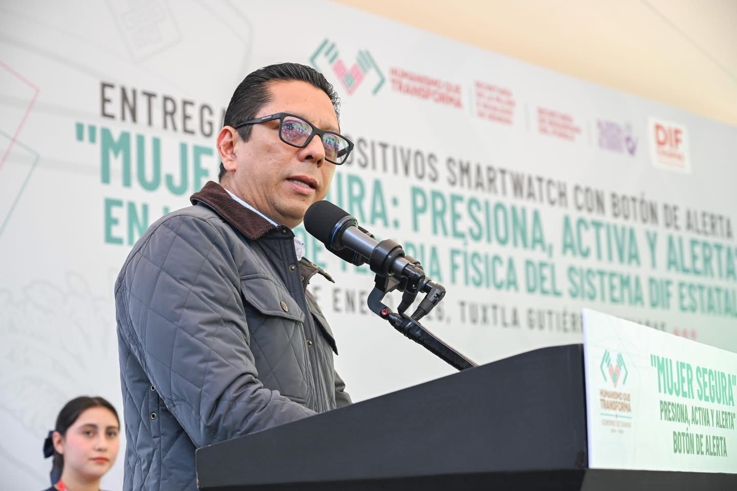La secretaria de la Mujer e Igualdad de Género, Marian Vázquez González, explicó que el programa Mujer Segura: Presiona, Activa y Alerta es una estrategia que visibiliza y atiende la seguridad de las mujeres mediante un dispositivo móvil con acceso directo a la Secretaría de Seguridad del Pueblo, en un perímetro de un kilómetro, lo que permite realizar actividades escolares, laborales, deportivas o recreativas con mayor tranquilidad. Precisó que el smartwatch es de uso personal e intransferible y recordó que, en caso de requerir apoyo, las usuarias pueden comunicarse de manera confidencial a la línea 079, donde recibirán atención jurídica y psicológica las 24 horas.