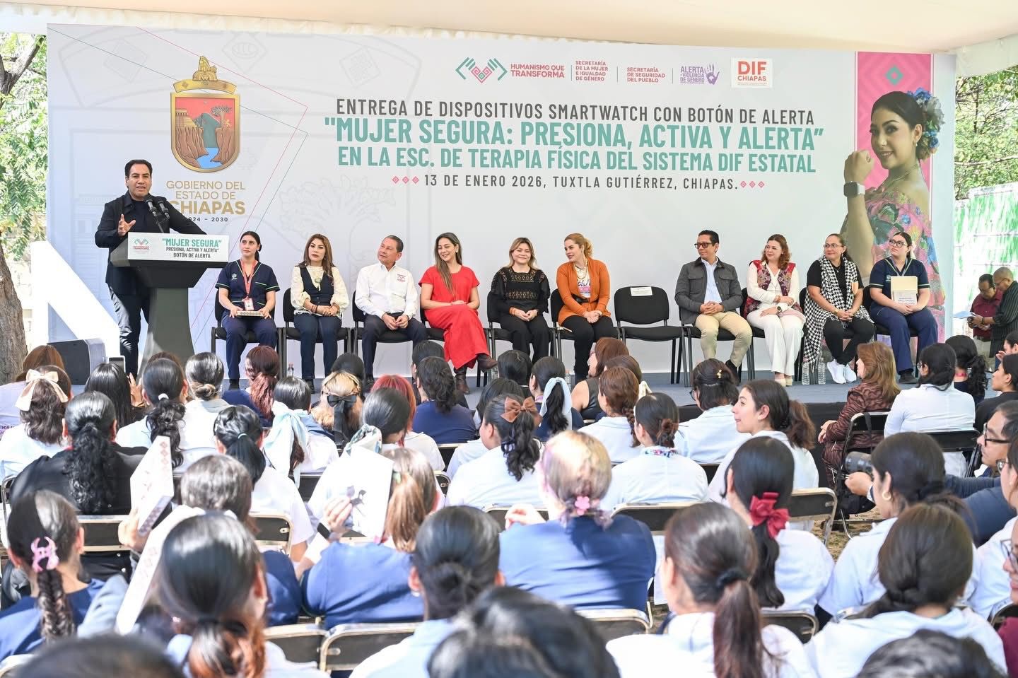 El gobernador Eduardo Ramírez Aguilar encabezó la entrega de dispositivos smartwatch con botón de alerta, enlazados al C5, como parte del programa Mujer Segura: Presiona, Activa y Alerta, dirigidos a estudiantes de la Escuela de Terapia Física del Sistema DIF Estatal. En este marco, destacó que una de las prioridades del gobierno de la Nueva ERA es garantizar la seguridad y el bienestar de las mujeres.