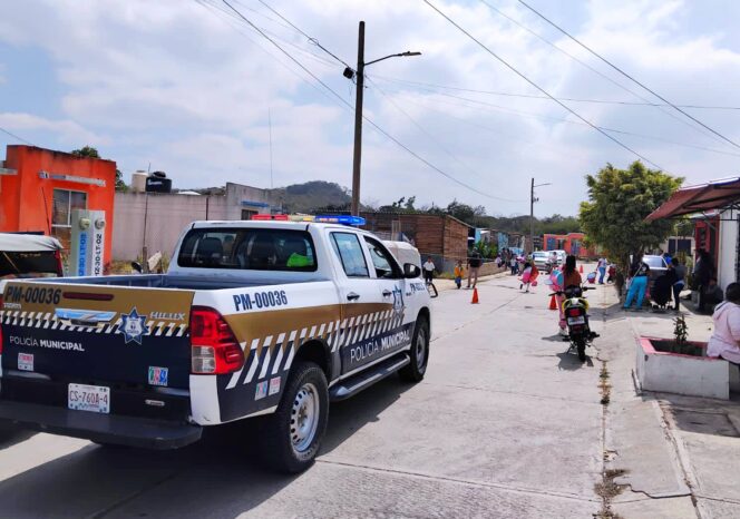 Como parte de la estrategia para salvaguardar la integridad de la ciudadanía, la Secretaría de Seguridad Pública y Tránsito Municipal continúa realizando patrullajes preventivos, además de vigilancia y apoyo en diversas instituciones educativas del Fraccionamiento Cd. Maya.