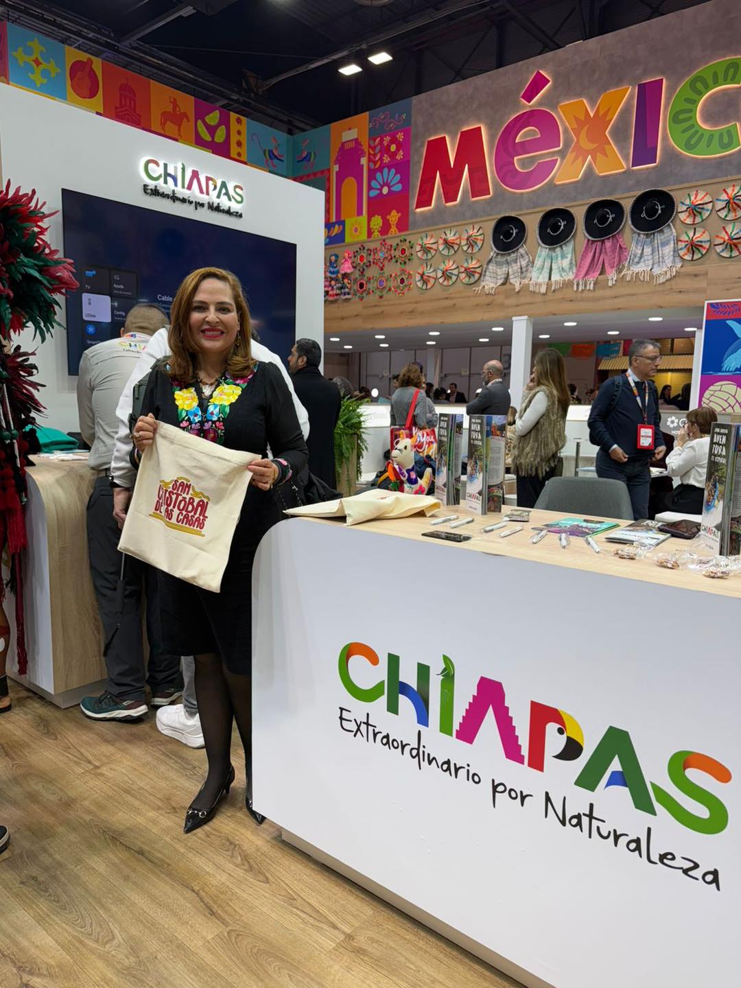 Acompañada por la secretaria de Turismo de Chiapas, María Eugenia Culebro Pérez, participó en la inauguración del Pabellón de México, encabezada por la secretaria de Turismo del Gobierno de México, Josefina Rodríguez Zamora. San Cristóbal de Las Casas cuenta con un stand propio y la participación de empresarios locales, donde se promueve su riqueza histórica y cultural, próxima a cumplir 500 años de fundación.
