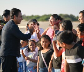 En el marco de esta actividad, el mandatario realizó un recorrido por el Campamento Tortuguero, durante el cual anunció que su administración fortalecerá de manera integral la infraestructura y el equipamiento del sitio, además de dotarlo de material didáctico.