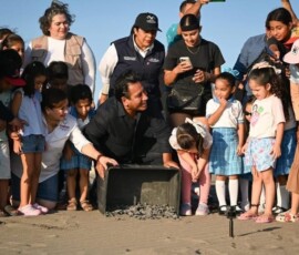 El gobernador Eduardo Ramírez Aguilar encabezó la liberación de crías de tortuga marina en la playa de Puerto Arista, en el municipio de Tonalá, donde refrendó el compromiso del gobierno de la Nueva ERA con el cuidado, la protección y la conservación de estas especies.