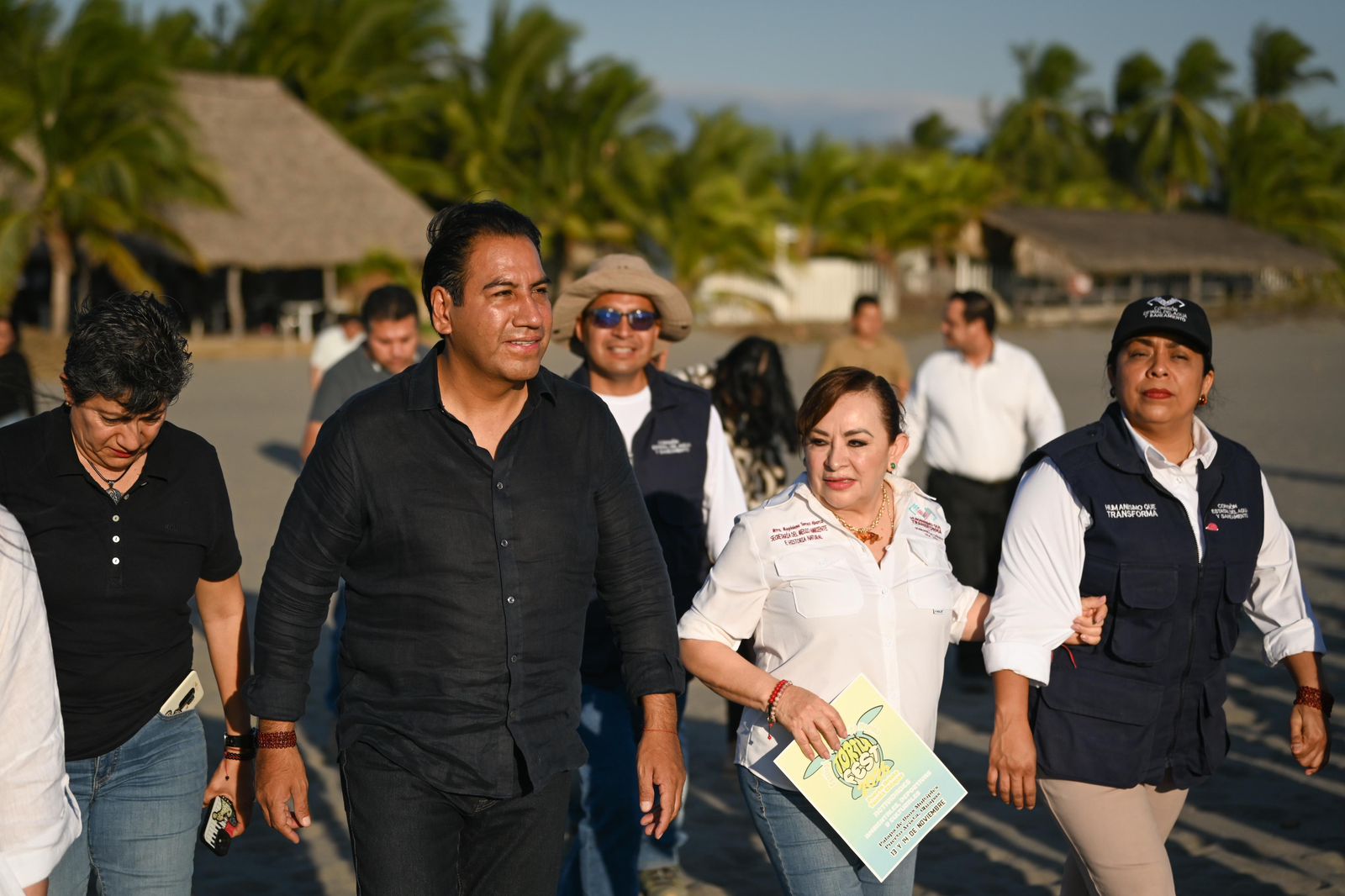 En el marco de esta actividad, el mandatario realizó un recorrido por el Campamento Tortuguero, durante el cual anunció que su administración fortalecerá de manera integral la infraestructura y el equipamiento del sitio, además de dotarlo de material didáctico.