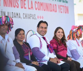 “Como gobernador de Chiapas lo más maravilloso es venir a entregar esta obra de agua potable, porque tener acceso al agua es una gran bendición y ahora la tendrán en sus hogares. También, hagan llegar el mensaje a las comunidades de que invertiremos para que ninguna aula sea de tabla o lámina y piso de tierra. Queremos que las niñas, niños y jóvenes tengan espacios dignos y de calidad”, manifestó.