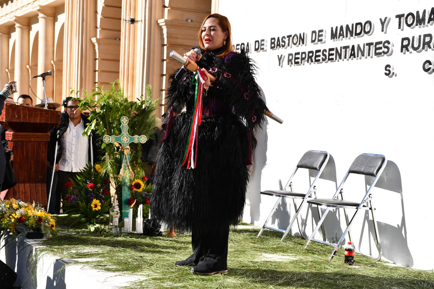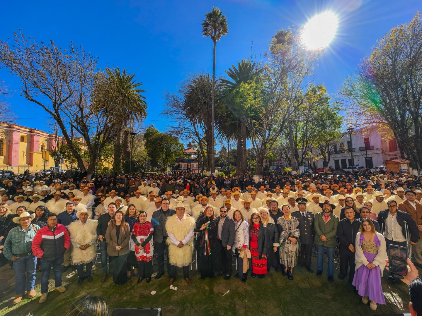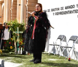 En un acto solemne cargado de simbolismo cultural y espiritual, representantes de las 107 comunidades del municipio realizaron la entrega y purificación del Bastón de Mando a la presidenta municipal, Mtra. Fabiola Ricci Diestel, reafirmando la legitimidad y ratificación de su mandato popular.