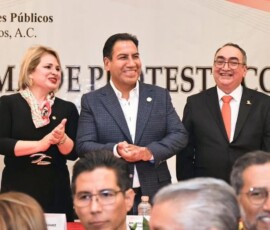 El mandatario felicitó a quienes integran el nuevo Consejo Directivo y señaló que su presencia, así como la de las y los servidores del pueblo, en este acto protocolario representa una invitación para que este colegio de profesionistas se sienta parte del gobierno de la transformación humanista. Asimismo, reconoció la aportación de las contadoras y los contadores al desarrollo de Chiapas y de México, tanto en el ámbito público como en el privado.