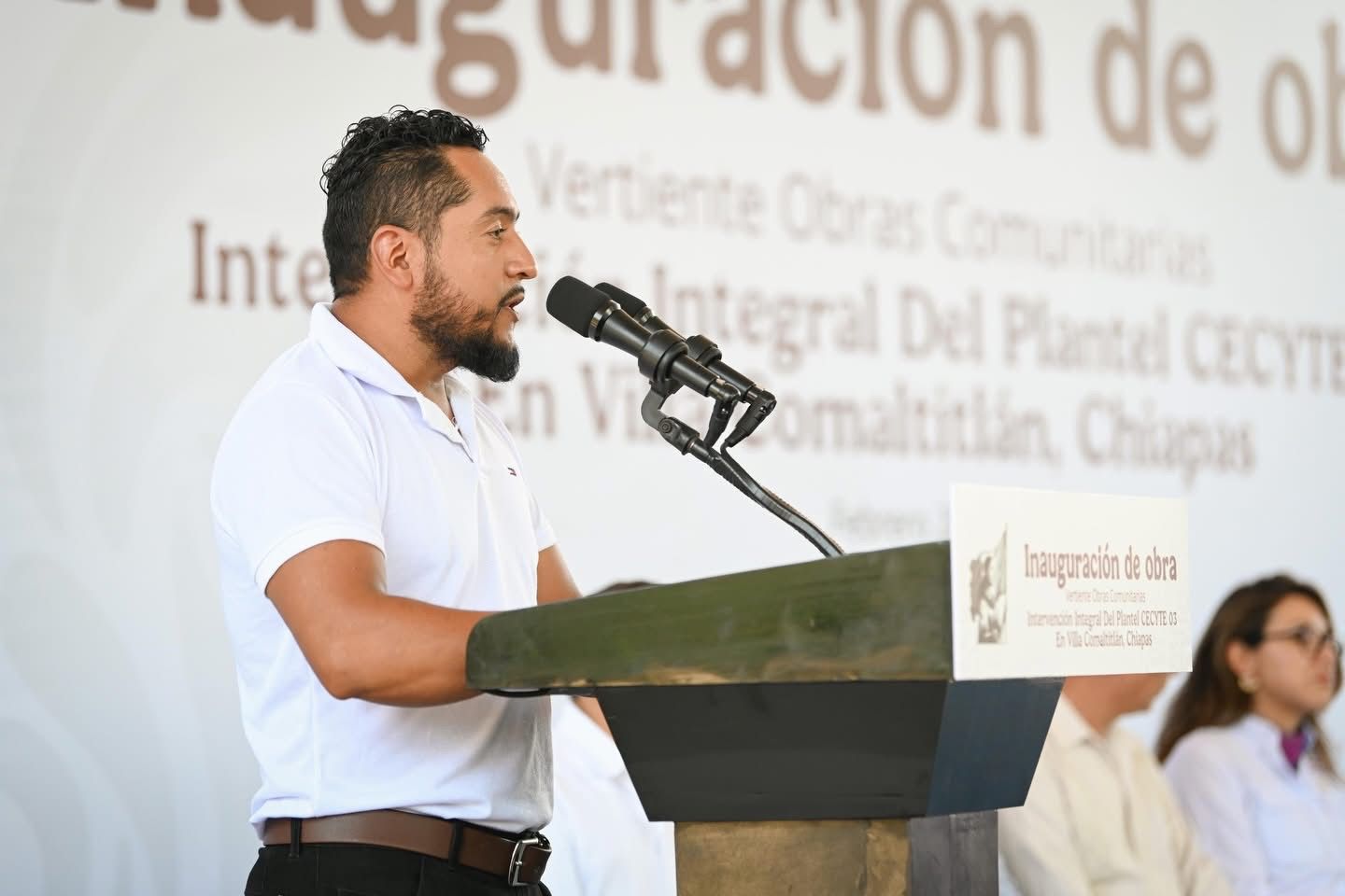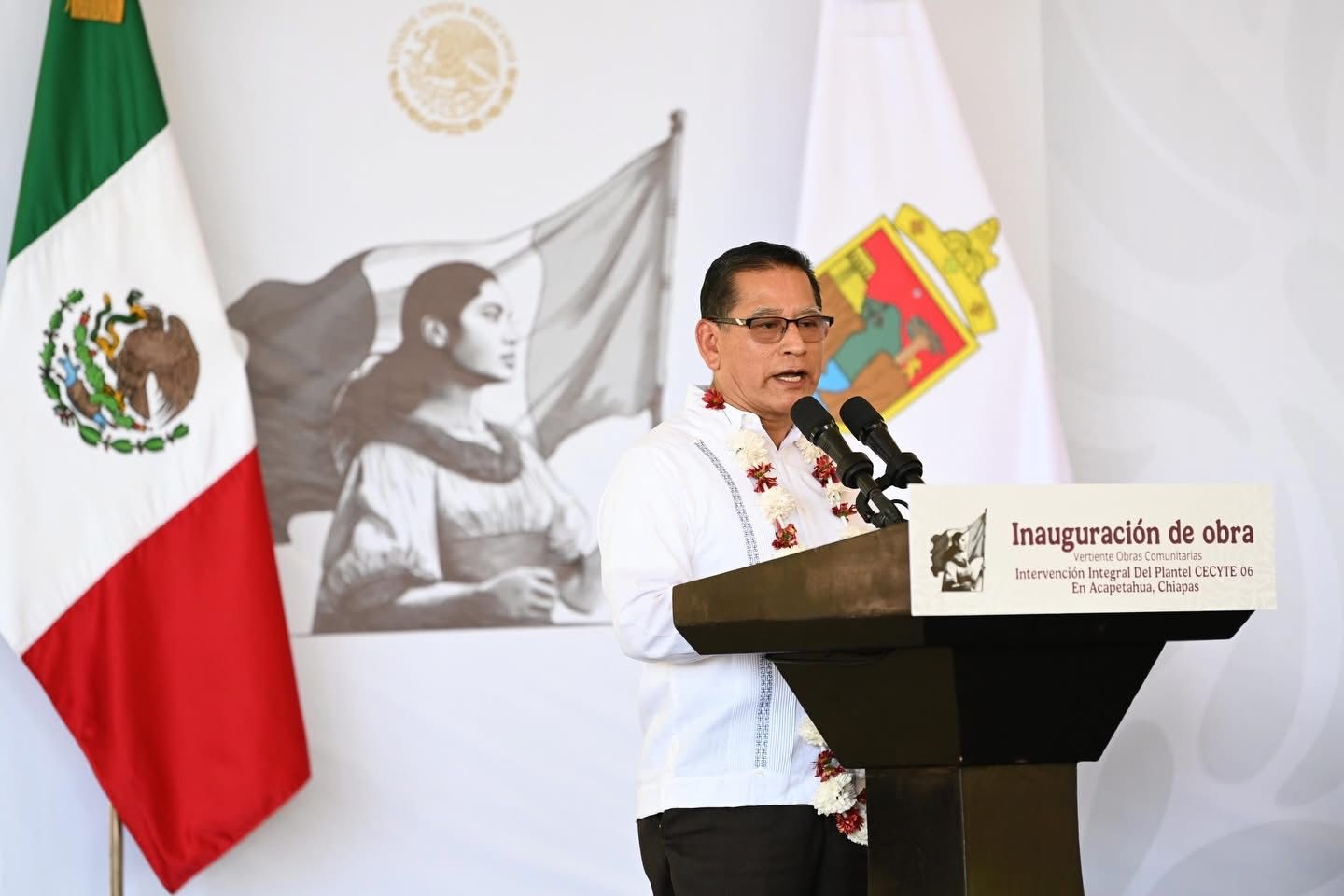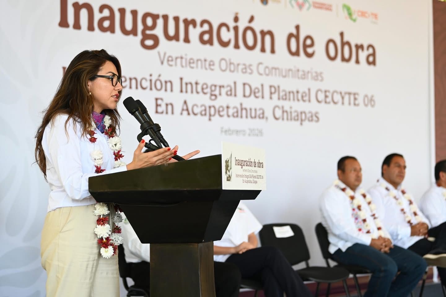 El gobernador Eduardo Ramírez Aguilar, acompañado por la directora general de Obras Comunitarias de la Secretaría de Desarrollo Agrario, Territorial y Urbano (Sedatu), Ana Gabriela Villanueva Huerta, en representación de la secretaria Edna Vega Rangel, y por el vicealmirante retirado, Octavio Sánchez Guillén, director general del Corredor Interoceánico del Istmo de Tehuantepec (CIIT), inauguró obras en los planteles 06 Acapetahua y 03 Villa Comaltitlán del Colegio de Estudios Científicos y Tecnológicos de Chiapas, realizadas mediante la Vertiente Obras Comunitarias, con una inversión cercana a los 10 millones de pesos.