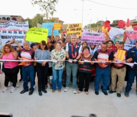 El presidente Angel Torres, junto a su esposa Mercedes Ortiz y a vecinas y vecinos, inauguró cerca de un kilómetro de pavimentación con concreto hidráulico del Boulevar Júpiter, en la colonia Satélite Loma Larga, con lo que llega la justicia social después de muchos años de espera.