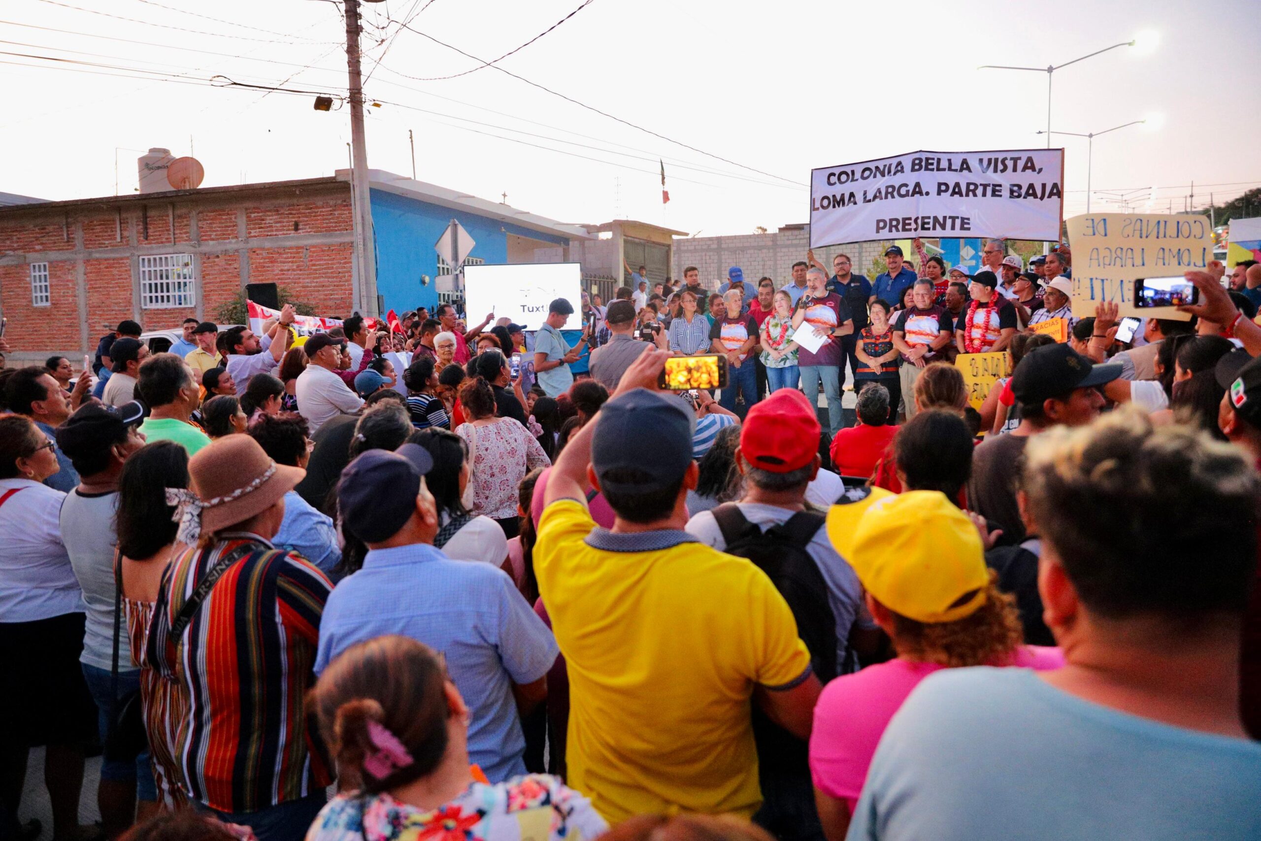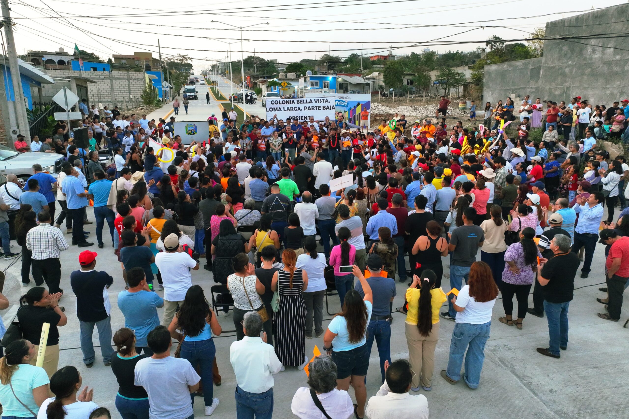 El presidente Angel Torres, junto a su esposa Mercedes Ortiz y a vecinas y vecinos, inauguró cerca de un kilómetro de pavimentación con concreto hidráulico del Boulevar Júpiter, en la colonia Satélite Loma Larga, con lo que llega la justicia social después de muchos años de espera.
