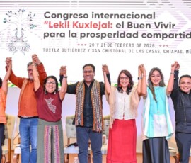 El mandatario consideró que comprender el Lekil Kuxlejal desde una visión de paz resulta fundamental para consolidar un desarrollo integral, acorde con las formas de vida de los pueblos y valoró la relevancia de estos encuentros para reconocer la riqueza estructural y la cosmovisión de los pueblos originarios. En ese contexto, convocó a las y los asistentes a reflexionar y aportar a la construcción de un Chiapas, un México y un mundo con mayor igualdad, solidaridad, conciencia y respeto hacia las personas y los recursos naturales.