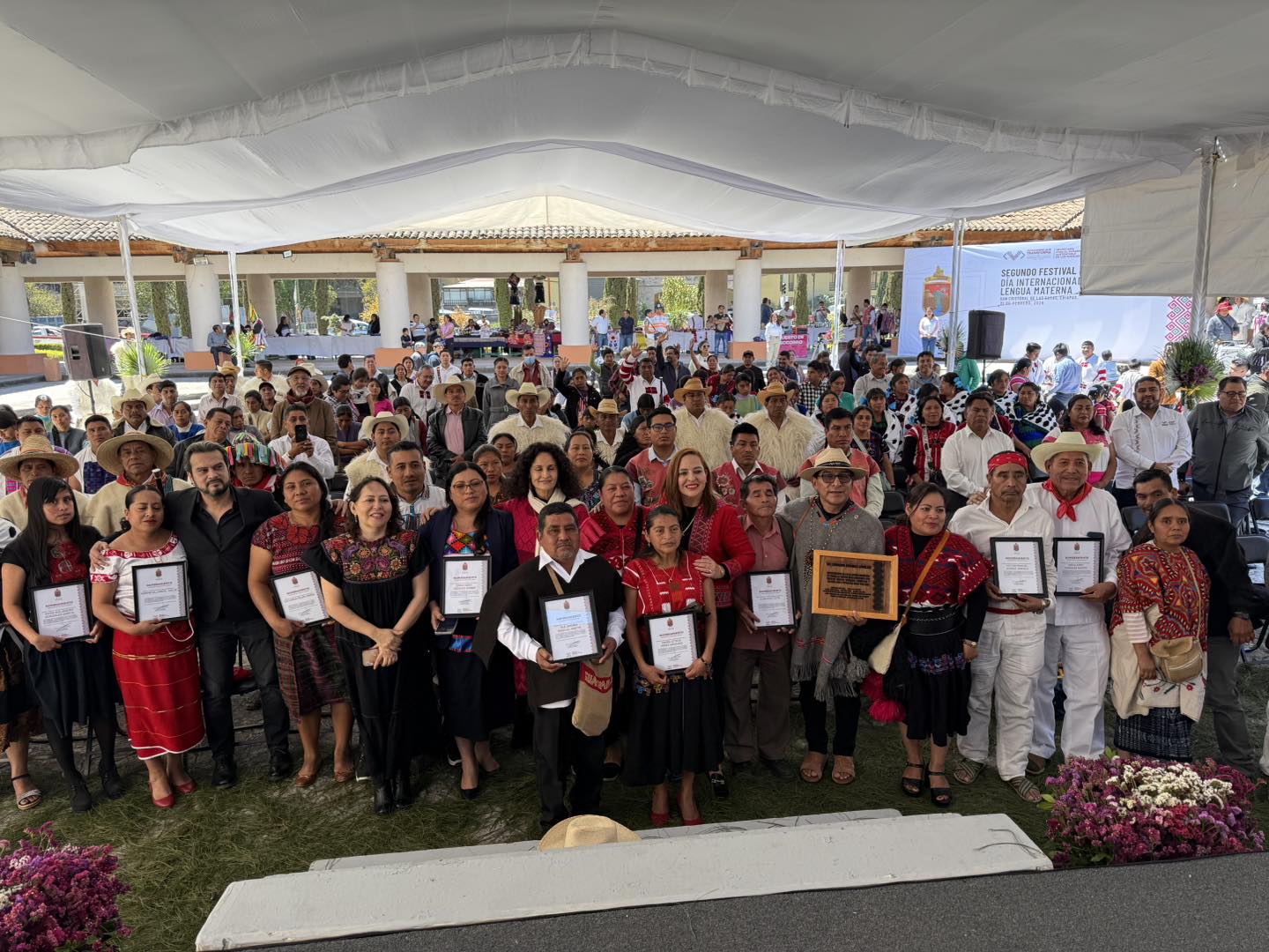Asimismo, reafirmó el compromiso del gobierno municipal de impulsar iniciativas que fortalezcan y protejan las lenguas originarias, reconociendo la labor de las guardianas y guardianes de los saberes ancestrales, quienes recibieron nombramientos por su contribución a la preservación de las 13 lenguas originarias del estado. Señaló que San Cristóbal de Las Casas se distingue por su carácter pluricultural, donde la diversidad lingüística fortalece la identidad del pueblo chiapaneco.