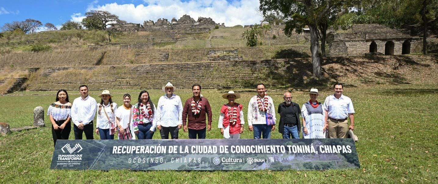 El gobernador Eduardo Ramírez Aguilar encabezó, junto a la asesora de la Presidencia de la República, Jesusa Rodríguez Ramírez, la ceremonia de recuperación de la zona arqueológica Ciudad de Conocimiento Toniná, en el municipio de Ocosingo. Destacó que este acto atiende el compromiso de la presidenta Claudia Sheinbaum Pardo de reabrir las puertas de este espacio cultural e histórico que pertenece a Chiapas, a México y al mundo.