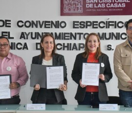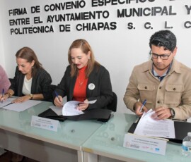 El Ayuntamiento de San Cristóbal de Las Casas, encabezado por la presidenta municipal, Mtra. Fabiola Ricci Diestel, y la rectora de la Universidad Politécnica de Chiapas (UP Chiapas), Dra. Indra Ruth Toledo Coutiño, firmaron un convenio específico de colaboración para fortalecer la cooperación académica, científica y tecnológica, así como para impulsar la organización del 3er Congreso Internacional en Ciencias Agrarias, Agroindustriales y Forestales, que se realizará del 26 al 30 de octubre de este año.
