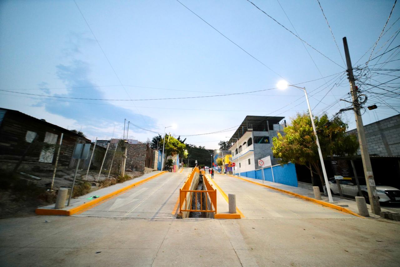 Es importante comentar que con esta obra se fortalece la conectividad, facilita el tránsito vehicular y brinda mayor seguridad peatonal, pues había un canal de aguas pluviales sin protección que significaba un peligro cotidiano para las y los habitantes.