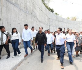 • En Bochil, entregó el muro de contención para la reducción de riesgos, obra en la que se invirtieron más de 17.3 mdp