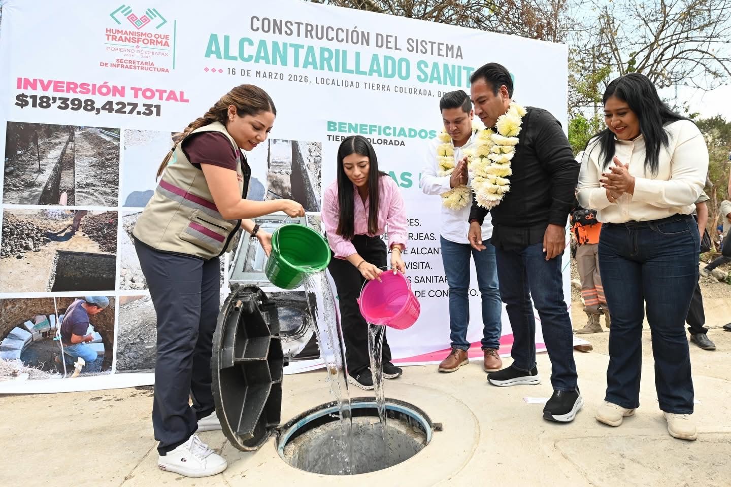 • En la localidad Tierra Colorada, inauguró el sistema de alcantarillado sanitario, infraestructura a la que se destinaron 18.3 mdp