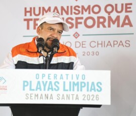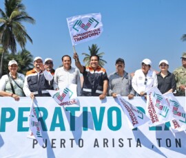 Desde Puerto Arista, en el municipio de Tonalá, el gobernador Eduardo Ramírez Aguilar encabezó el inicio del Operativo Playas Limpias correspondiente al periodo vacacional de Semana Santa 2026, donde agradeció la participación de las y los brigadistas de la Secretaría de Salud, así como de instancias federales, estatales y municipales, y de la sociedad civil que se suman a esta iniciativa.