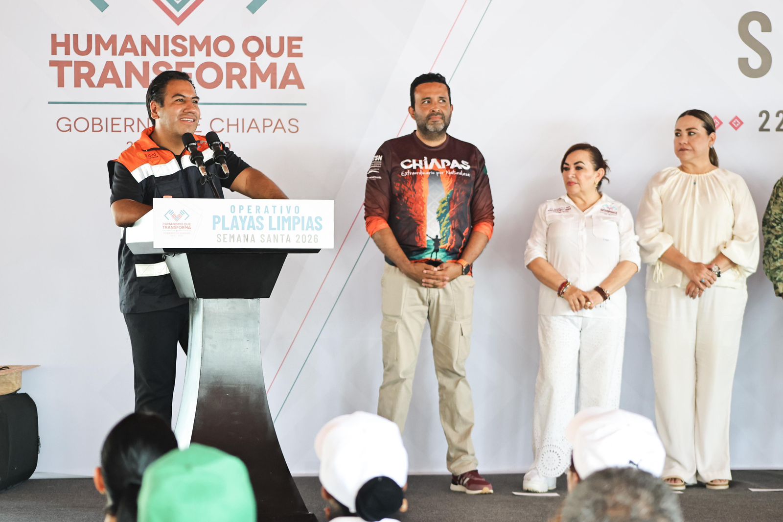 Desde Puerto Arista, en el municipio de Tonalá, el gobernador Eduardo Ramírez Aguilar encabezó el inicio del Operativo Playas Limpias correspondiente al periodo vacacional de Semana Santa 2026, donde agradeció la participación de las y los brigadistas de la Secretaría de Salud, así como de instancias federales, estatales y municipales, y de la sociedad civil que se suman a esta iniciativa.