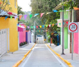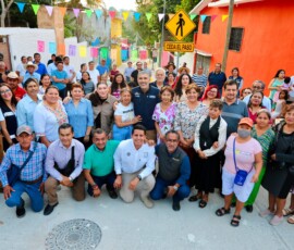 A través de este programa, Angel Torres, acompañado de vecinas y vecinos, inauguró este viernes más de 200 metros lineales de pavimentación integral en la avenida El Zapote, colonia Cerro Hueco, con servicios básicos, alumbrado público y pintura en la fachada de las viviendas.