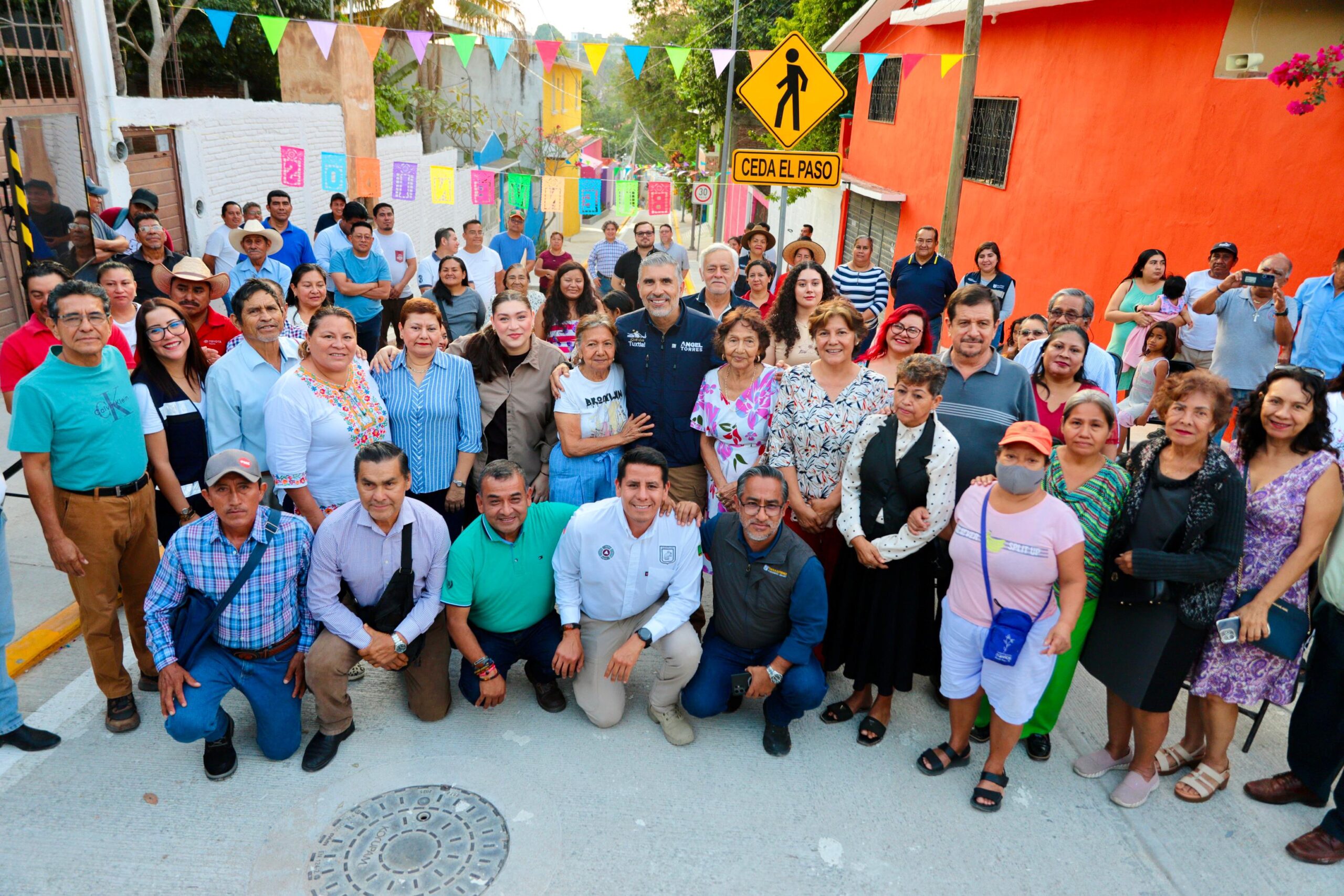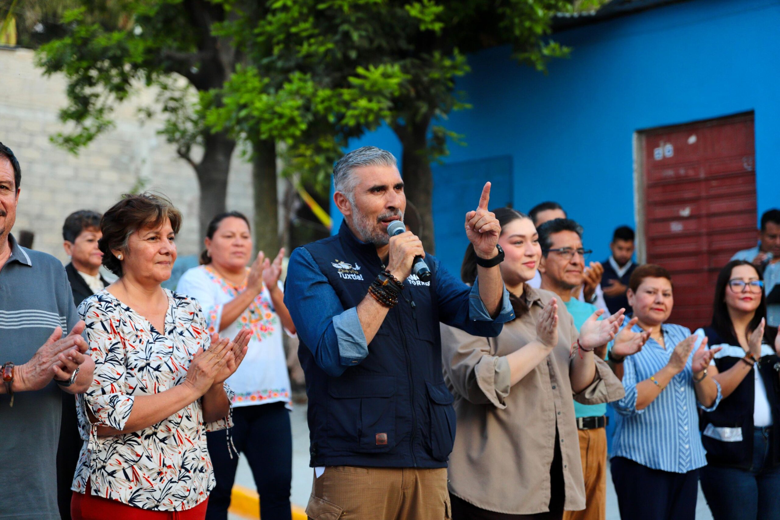 A través de este programa, Angel Torres, acompañado de vecinas y vecinos, inauguró este viernes más de 200 metros lineales de pavimentación integral en la avenida El Zapote, colonia Cerro Hueco, con servicios básicos, alumbrado público y pintura en la fachada de las viviendas.