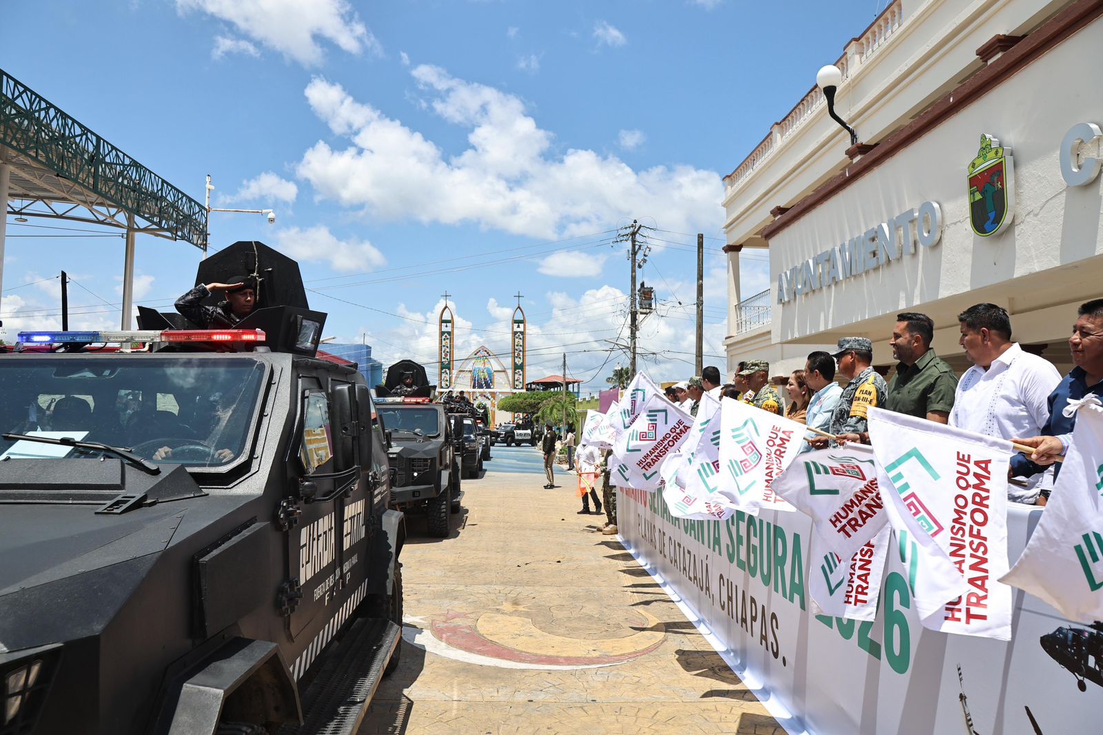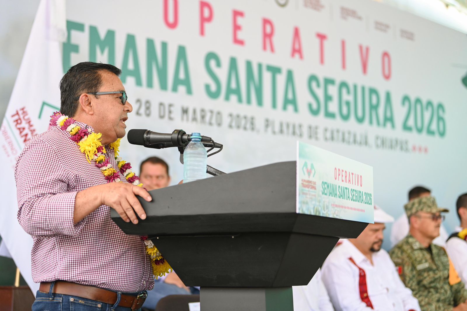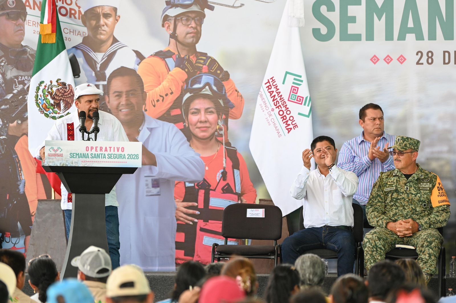 Desde el municipio de Catazajá, el gobernador Eduardo Ramírez Aguilar puso en marcha el Operativo Semana Santa Segura 2026, donde destacó que las Fuerzas Armadas y las instituciones que integran el Gabinete de Seguridad desplegarán una amplia fuerza de tarea en las distintas regiones del estado, con el propósito de prevenir riesgos y garantizar la seguridad de las familias, así como de quienes visiten los destinos turísticos de Chiapas.